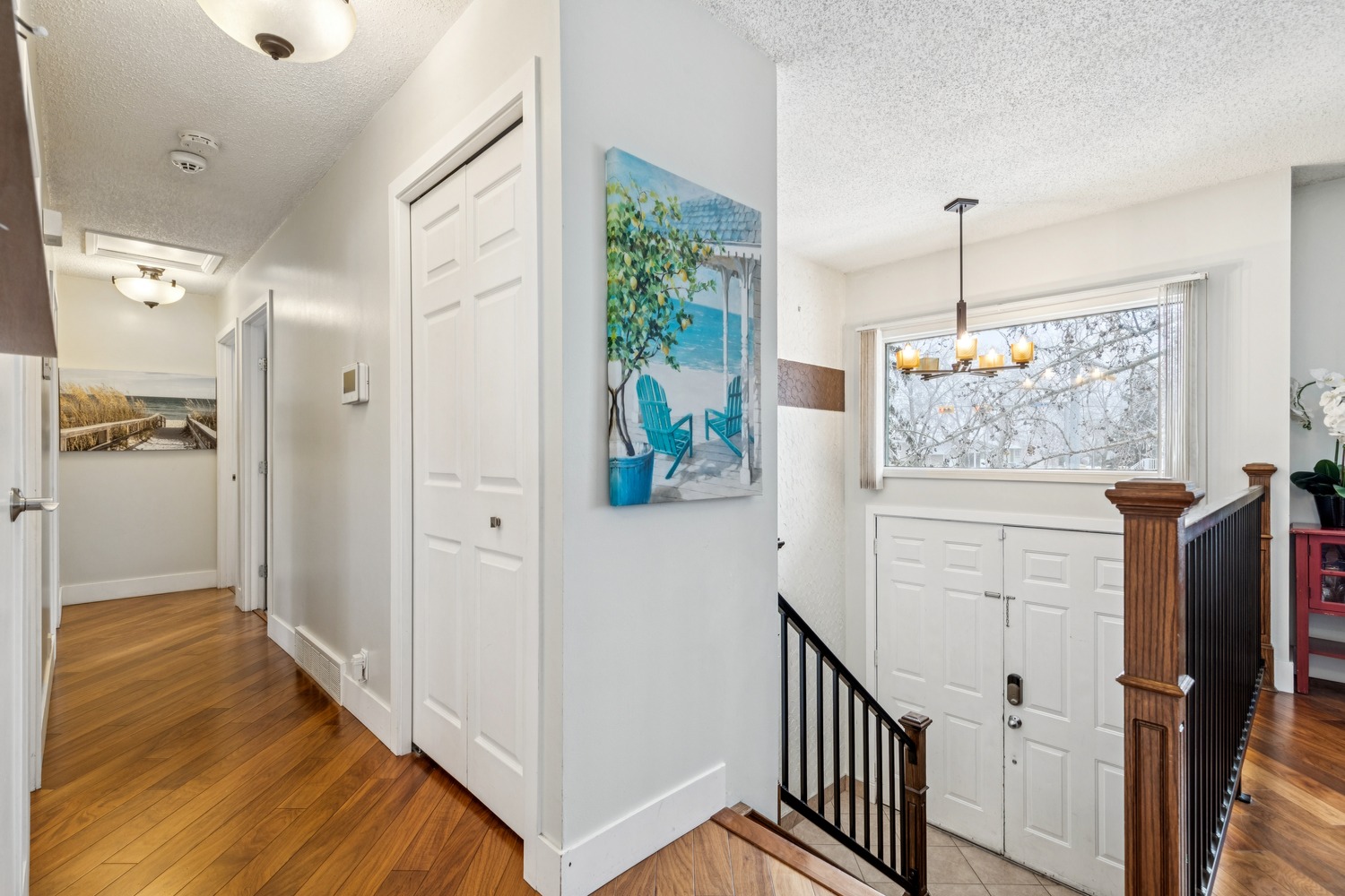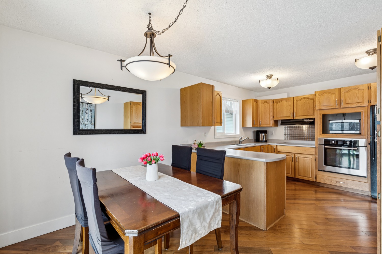 With 4 bedrooms + office, there’s truly room for everyone. Situated on a sun-filled corner lot, the large front window fills the living room with warm morning light - the perfect place to relax and enjoy the sunrise. Offering over 1,160 sqft the main level features hardwood flooring throughout the main living areas. The bright oak kitchen flows seamlessly into the dining nook, creating an ideal space for family meals and gatherings. Patio doors lead to the deck, overlooking the spacious backyard - perfect for summer BBQs or watching the kids play. All bedrooms are generously sized, and the primary bedroom includes built-in closet wardrobes for practical, organized storage. The main bathroom is designed with families in mind, featuring double sinks and a tiled tub surround.