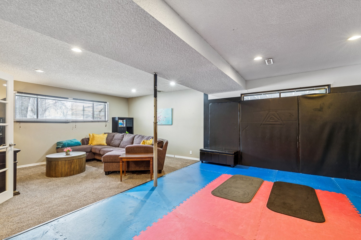 Downstairs, the bi-level design truly shines with oversized windows that keep the lower level bright and inviting. The fully finished basement offers a large rec room currently set up with sports mats - perfect for kids’ playtime, home gym, or media space. You’ll also find additional bedroom, office and a 3-pc bathroom, making this level ideal for teens, guests, or a home office.