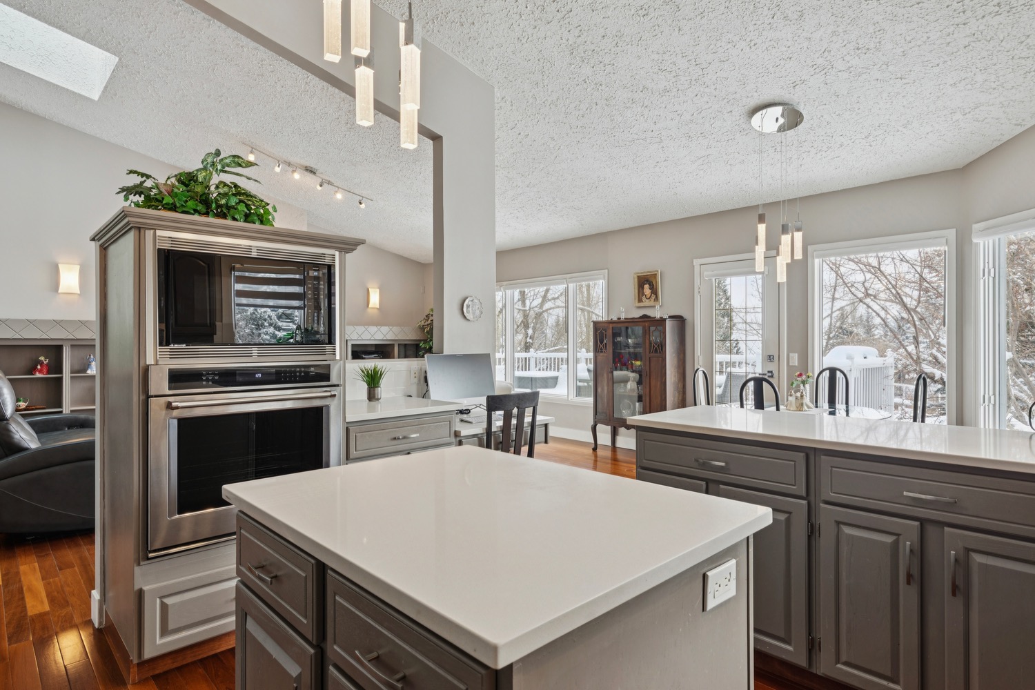 Welcome to the prestigious estate enclave of Scenic Acres, where unobstructed south-facing views stretch across COP, mature treetops, and endless sky what the owners fondly call their “cruise ship view.” From vibrant sunrises to breathtaking sunsets, the colors are extraordinary. Enjoy watching the deer in the neighbor's yard from the bedroom window. Great for bird watching as birds gather in the trees, and a quiet tree-lined pathway behind the home adds to the peaceful, nature-inspired setting all while being tucked into a desirable cul-de-sac. Offering nearly 4,000 sq ft of beautifully developed living space and Brazilian hardwood, this fully updated walkout bungalow blends warmth and openness. Vaulted ceilings and new triple-pane skylights flood the main level with natural light, enhancing the bright, open design. Expansive windows showcase the majestic south view from nearly every room. The living room is anchored by an elegant gas fireplace, creating the perfect space to unwind on cold evenings. The spacious, well-lit kitchen is designed for gathering and everyday convenience, featuring quartz countertops, premium appliances, generous pantry storage, and seamless flow into the dining and living areas. Whether hosting dinner parties or enjoying quiet mornings, this space delivers. The master bedroom offers a peaceful and private retreat with a luxurious ensuite and two large closets. There is a flex room on the main floor that could function as a bedroom but currently is utilized as a pantry featuring shelving and seasonal storage. The fully developed walkout lower level is just as bright and inviting, offering additional bedrooms, a large recreation and games are a perfect for playing pool, ping pong and Wii games. One of the bedrooms is presently functioning as a quiet office providing an ideal environment for working from home and holding zoom meetings. You will appreciate the well-organized laundry room with cabinetry and folding space. An added bonus is the great storage areas in the basement . The rebuilt deck overlooks the private south yard perfect for 3 season barbecues and soaking in the view. The long driveway comfortably accommodates multiple vehicles, complemented by recent concrete improvements and a double garage with an insulated door and epoxy flooring. Extensive mechanical and structural upgrades have been completed in recent years, including major systems, roofing, skylights, water line, and more - providing exceptional peace of mind for the next owner. This is a rare combination of panoramic views, mature surroundings and walkout design, all in one of NW Calgary’s most sought-after estate communities. Please refer to the detailed upgrades feature sheet for a full list of improvements totaling over $100k.