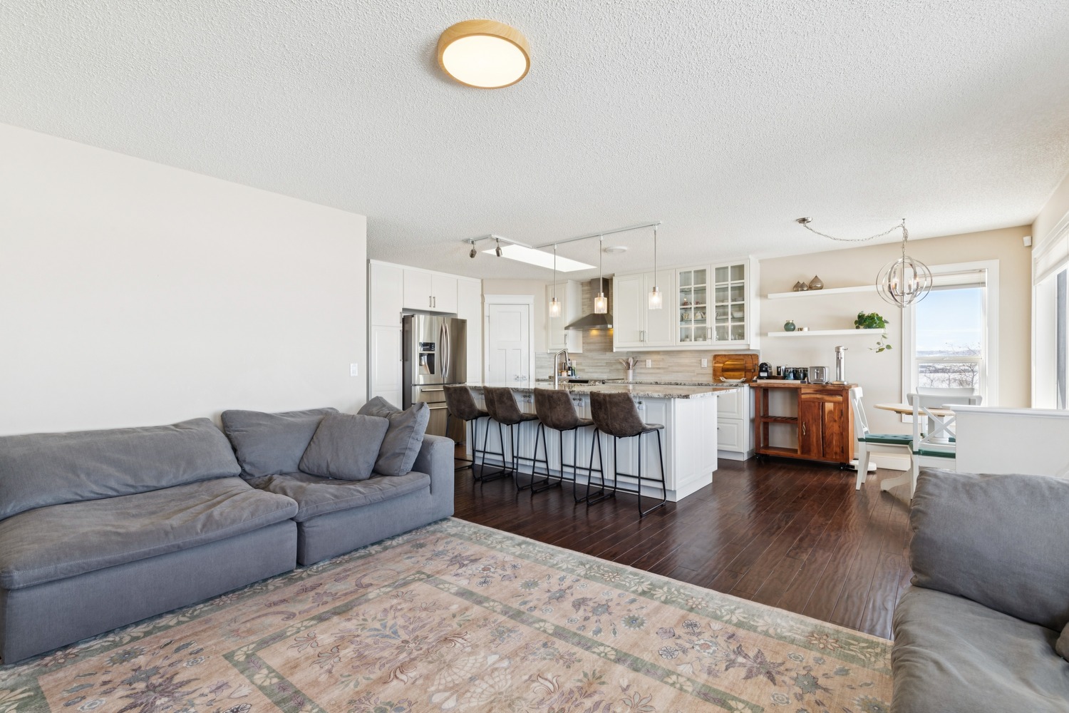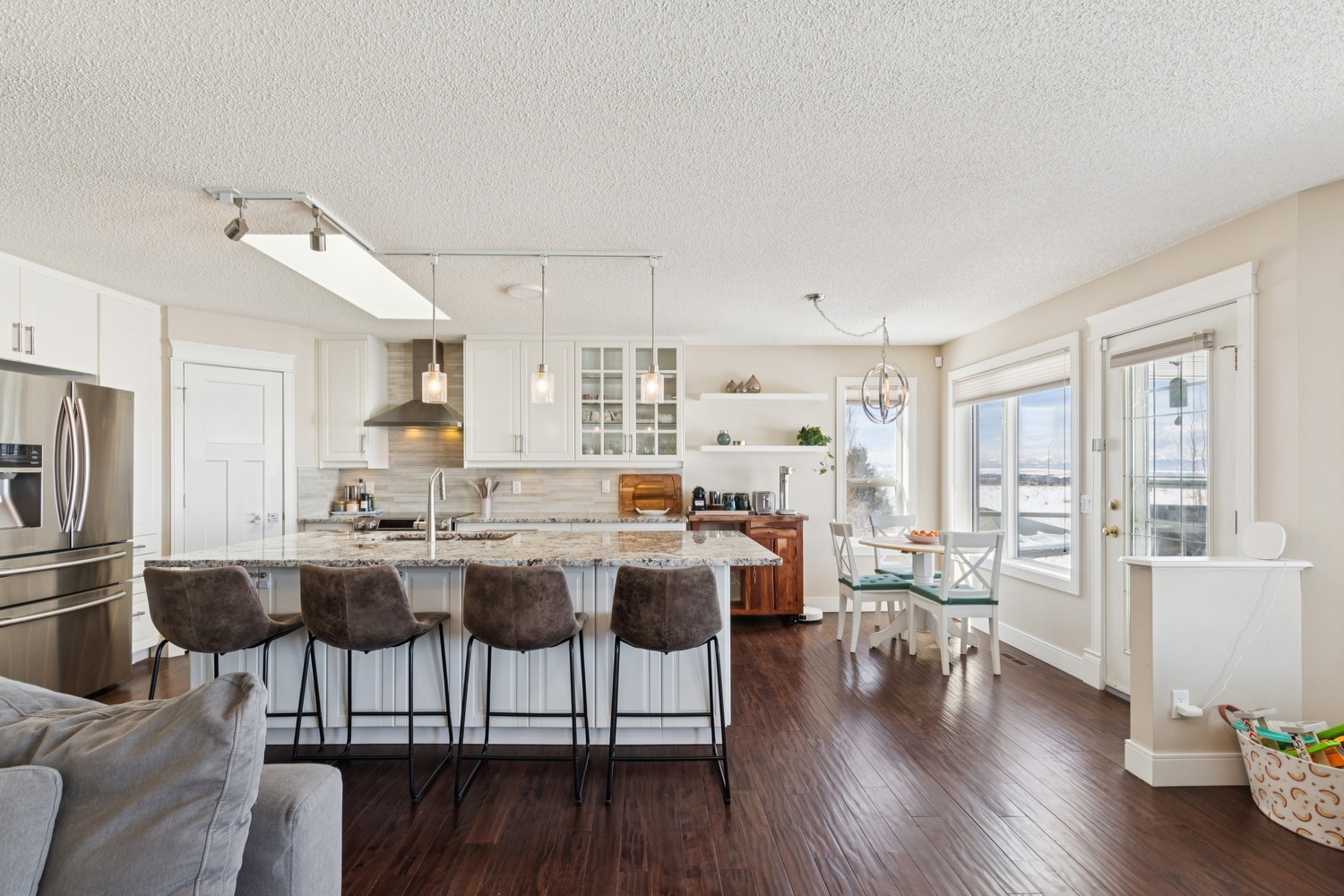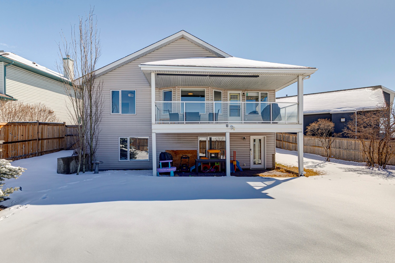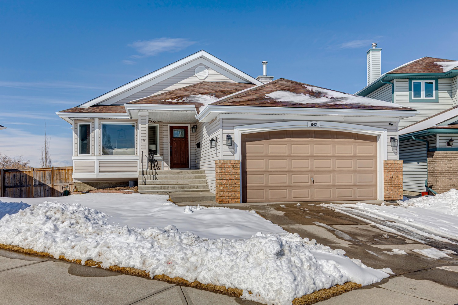 Step inside to a spacious FORMAL LIVING AND DINING ROOM, perfect for entertaining, highlighted by VAULTED CEILINGS and an abundance of natural light. The thoughtfully designed main floor features two living areas, including a rear family room that flows seamlessly into the fully renovated kitchen, where you can enjoy stunning mountain views right from your kitchen and living room windows. The kitchen showcases granite countertops, smooth white cabinetry, stainless steel appliances, a skylight, and large windows that fill the space with natural light. Step out onto the large balcony and take in the PANORAMIC MOUNTAIN VIEWS, perfect for relaxing or entertaining. The primary bedroom offers breathtaking MOUNTAIN VIEWS and features a beautifully updated ensuite bath. The main level also includes a spacious second bedroom, a beautifully renovated full bathroom, a private office with skylight, plus a convenient laundry and mud room area. The NEWLY RENOVATED WALKOUT BASEMENT offers exceptional additional living space, including a large recreation room, bar with refrigerator and sink, two generously sized bedrooms, a fitness area, and a stylish full bathroom—perfect for guests. Even with all this finished space, there is still ample storage. With almost 3,400 SQUARE FEET OF DEVELOPED, USABLE SPACE, this home offers incredible flexibility for families of all sizes. Additional updates include a recent roof, two newer furnaces, a new hot water tank, central A/C, vacuum system, fresh paint, updated baseboards and doors, and BIRCH HARDWOOD flooring on the main level. The double attached garage offers ample storage and includes a conveniently installed EV outlet. Nestled on a friendly cul-de-sac, this home offers access to walking paths and is conveniently close to schools, transportation, shopping, and amenities. Added convenience includes timed underground sprinklers, plus a private backyard complete with a shed and gazebo. Outside, you’ll truly appreciate the privacy of having no neighbors behind, along with a massive fenced backyard, perfect for enjoying daily sunsets over the mountains. Book your private showing today!