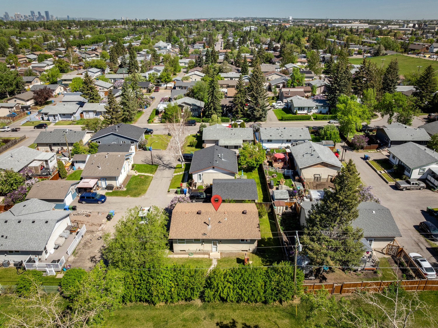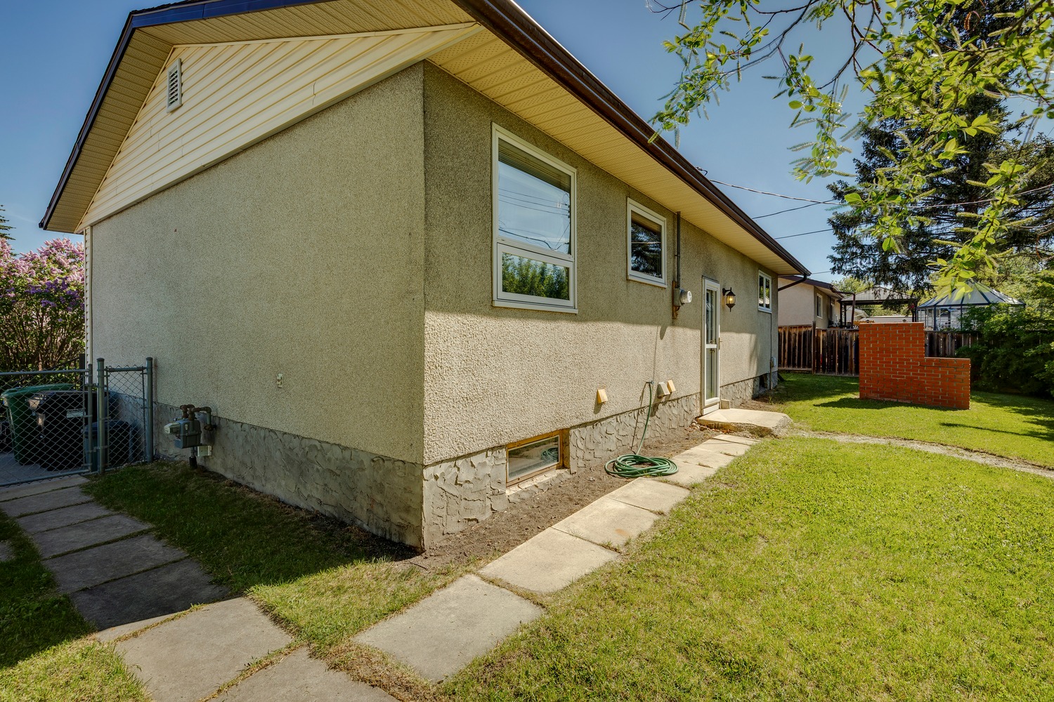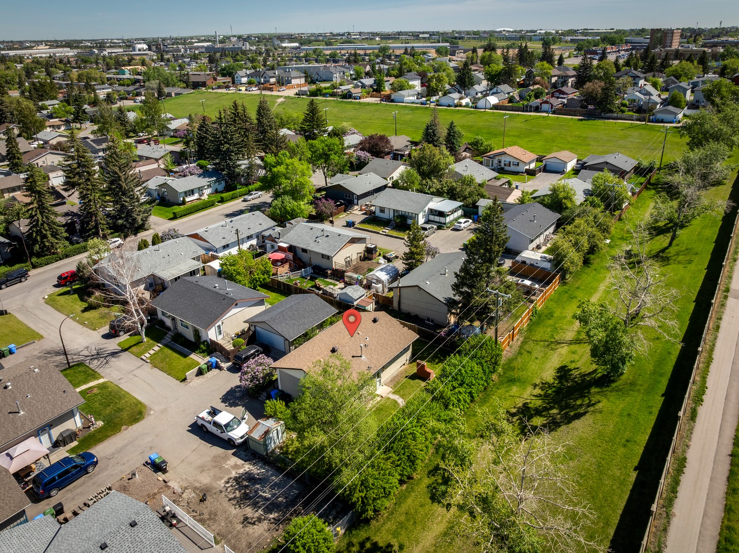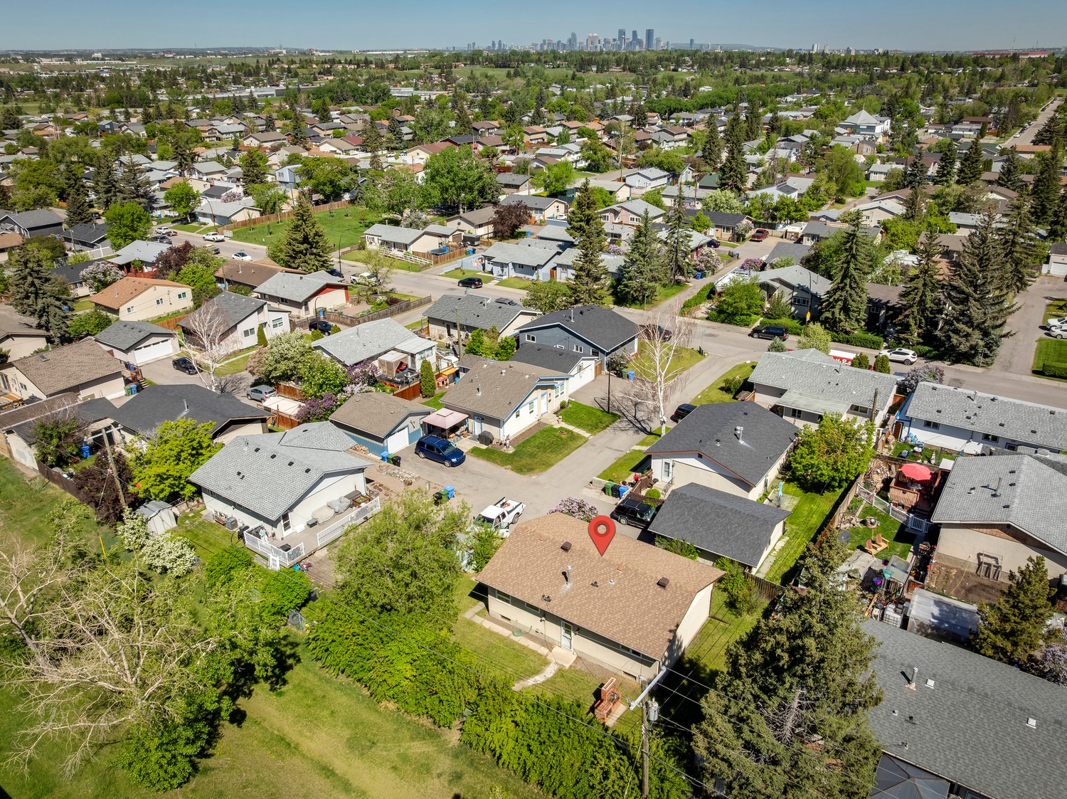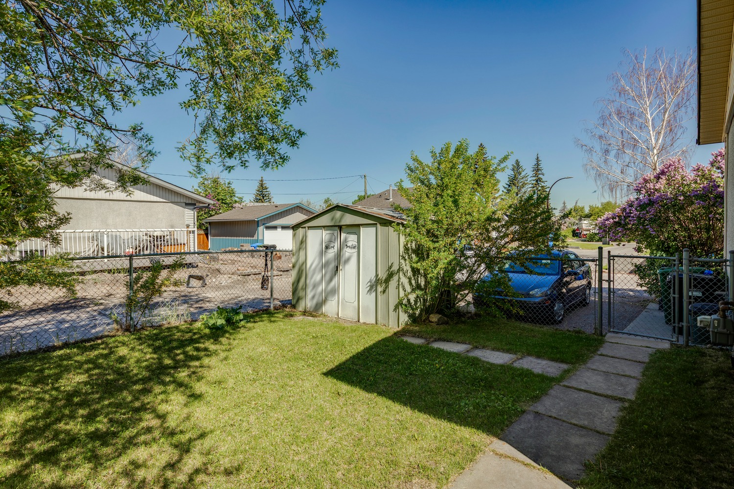 Located in a quiet cul-de-sac in a well-established, family-friendly community, this charming bungalow has been proudly maintained by its original owner and offers an excellent opportunity for homeowners or investors alike. This solid, "Engineered" built home sits on a generous lot with two parking spaces on the west side of the house, mature landscaping, a fenced yard perfect for children and pets, a storage shed, and plenty of room for a future vegetable garden. Enjoy your fragrant lilac bush and Nan-king cherry bush (make yummy jelly). The main level is filled with natural light and features a comfortable living room, three bedrooms with large closets, and a spacious, functional kitchen with an eat-in dining area. The kitchen offers ample cabinet space, newer countertops, a Samsung fridge, and a Kenmore stove. The bathroom has been updated with a newer tub and shower, sink and faucet, and toilet. Vinyl siding, newer storm doors, and covered gutters have been added, enhancing the exterior durability. The basement includes a huge finished bedroom (non-egress window) and abundant storage space with built-in shelving units. Practical updates over the years include windows, front and back doors, furnace, hot water tank, and 25-year shingles installed in 2007. Enjoy the green space and off-leash park right behind your home, or explore the nearby Bow River Pathway for walking and biking. This home is ideally situated, just 15 minutes to downtown, and close to Rapid Transit. Quick access to Deerfoot, Glenmore, and Stoney Trail, takes you to South Campus Hospital, and the International Airport. Nearby are schools (Charter, Public and Catholic), and several parks, including Beaverdam Flats Park. Easy shopping experience just minutes from a community mall featuring great shops and restaurants. The Community Centre forms the hub for a 50+ Centre featuring a variety of programs for seniors, an outdoor pool ( one of the few in Calgary), an indoor hockey rink, and a soccer field. Don't miss your chance to make this well-cared-for home your own, or renovate for future value!