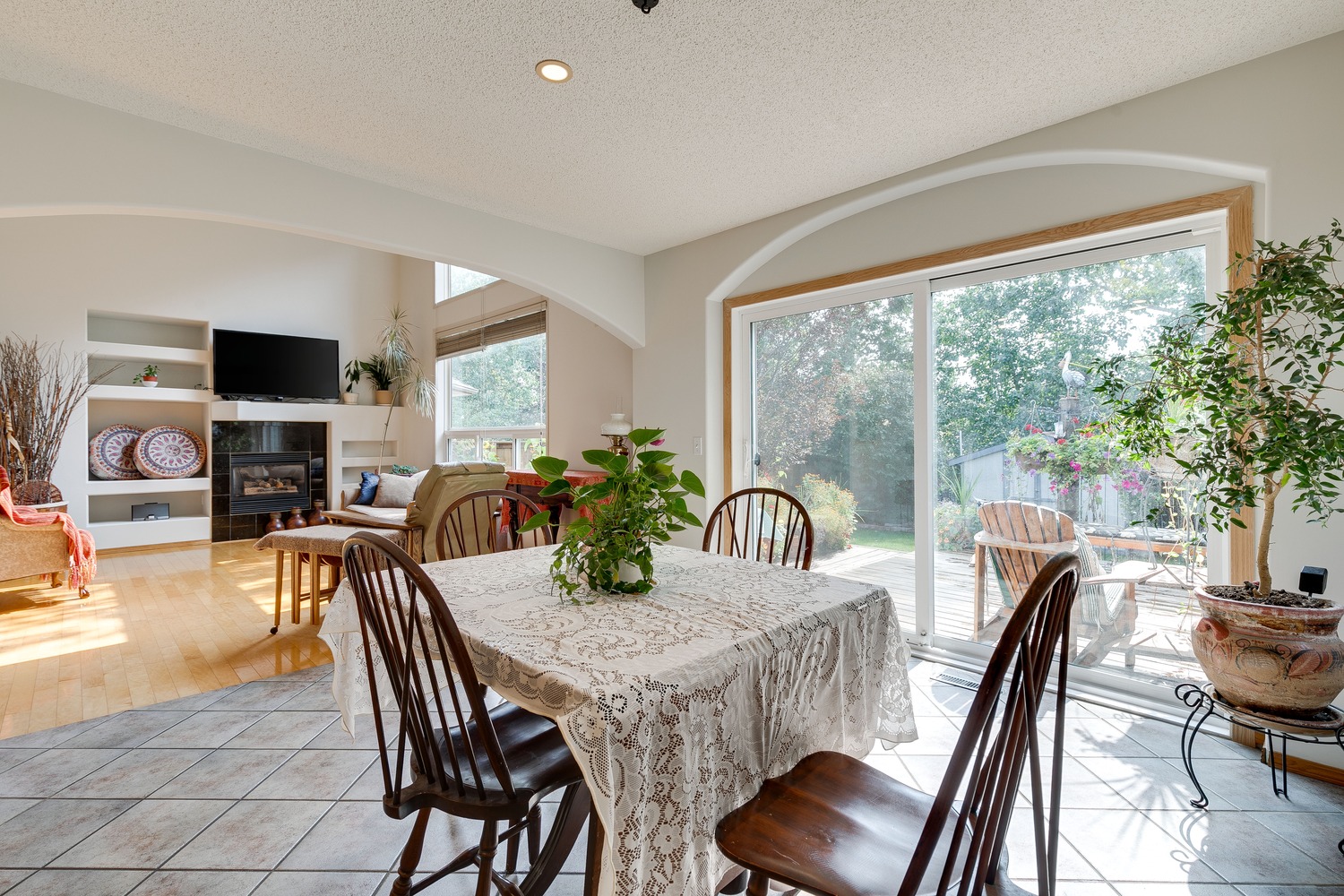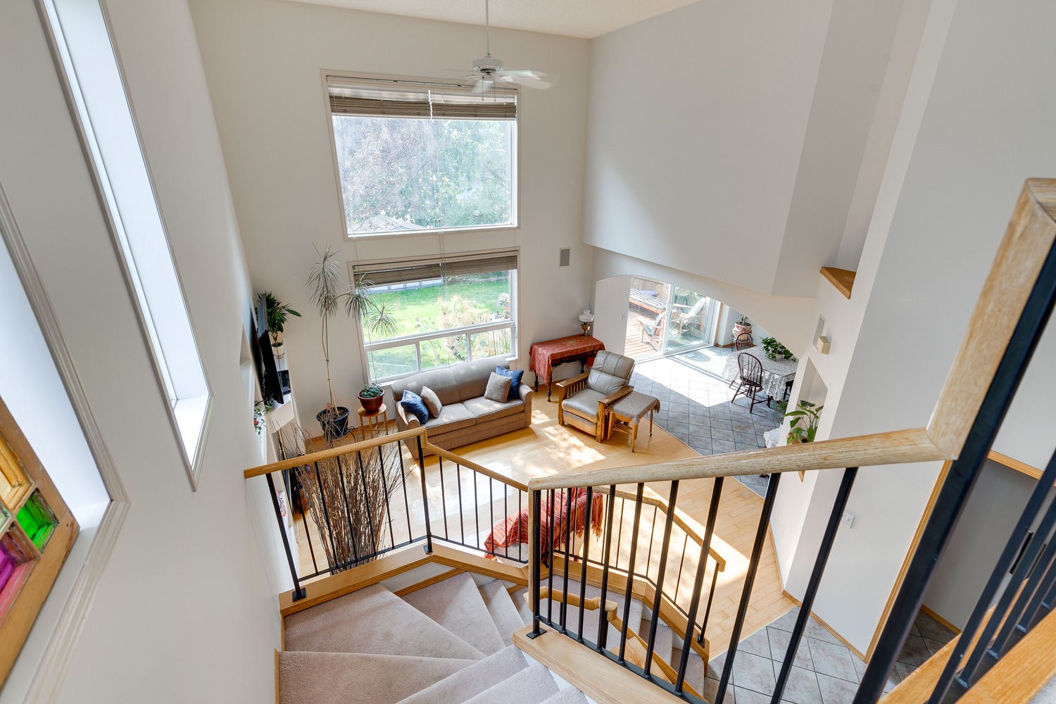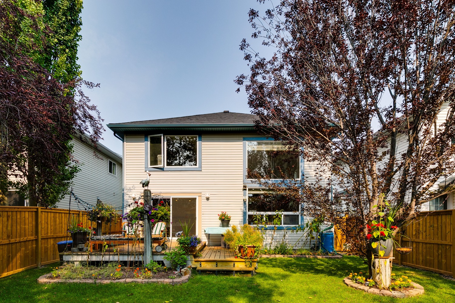 This sought-after neighbourhood offers direct access to the Valley Ridge Golf Course, Bow River pathways, and over 50% preserved green space—ideal for hiking, biking, and exploring the outdoors. Families will value the proximity to reputable schools, while the active community association fosters connection through events and programs. With quick access to Highway 1 and Stoney Trail, commuting downtown or across the city is effortless. This beautifully maintained home blends classic charm with modern comfort. The main level features a spacious foyer leading into a sun-filled living room with soaring 20-foot ceilings. An open floor plan flows into the dining area and generous kitchen, all overlooking the backyard. Upstairs, the primary suite includes a walk-in closet and 4-piece ensuite. Two additional bedrooms share a Jack & Jill bathroom, and laundry is conveniently located on the upper level. The finished basement offers a large family room, fourth bedroom, full bathroom, and ample storage. Outside, mature trees, a wood deck, and a garden shed create a private backyard retreat—perfect for relaxing or entertaining.