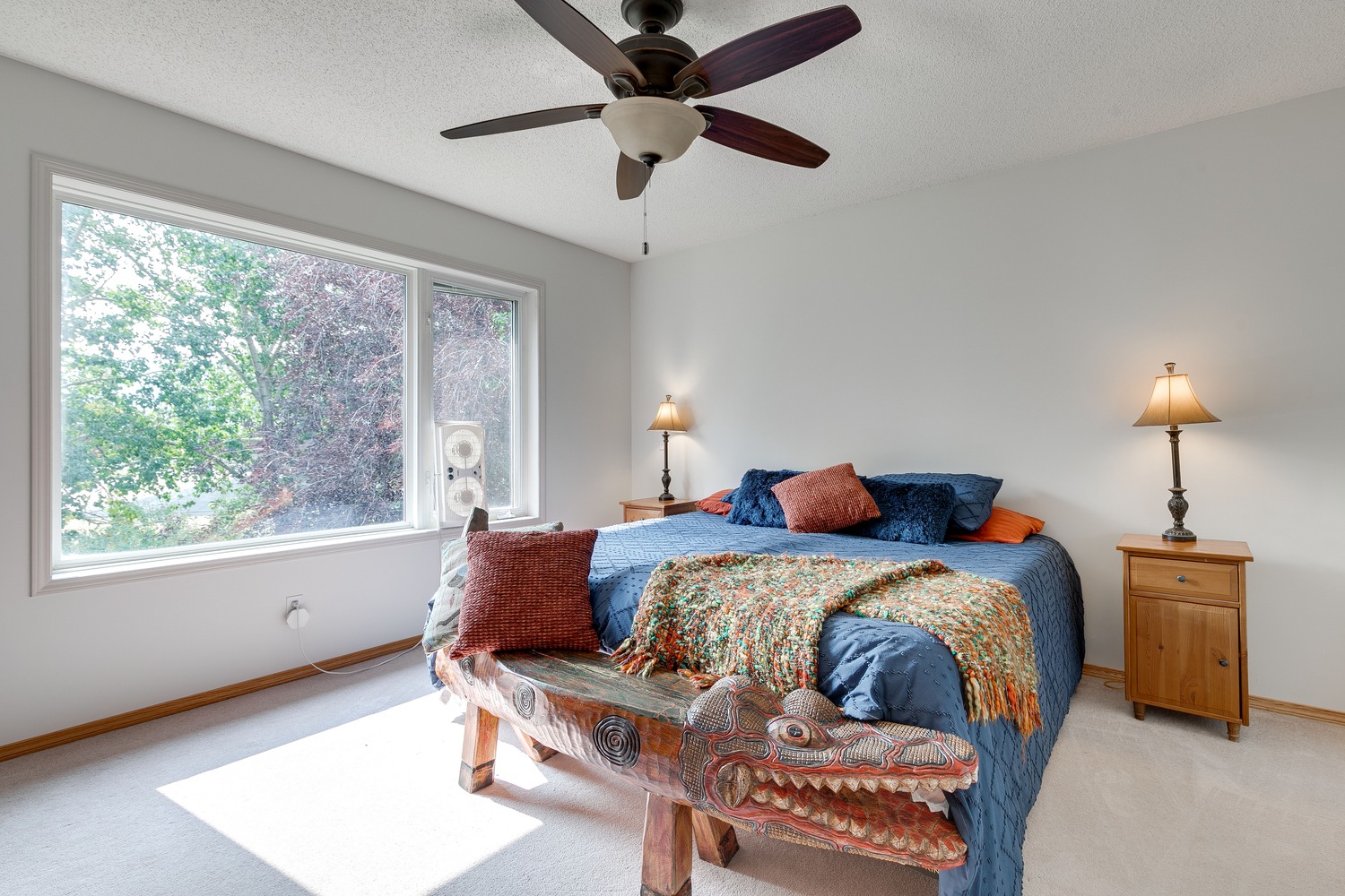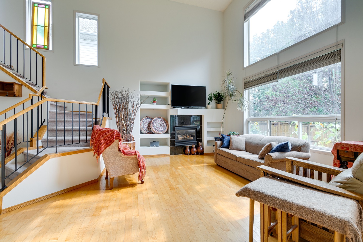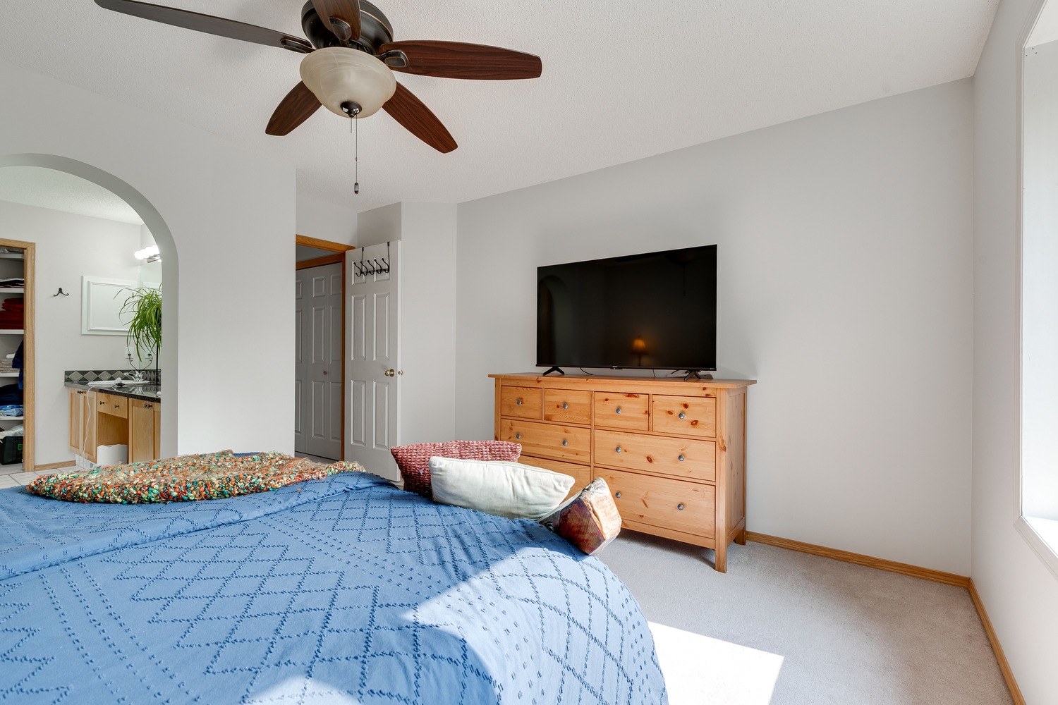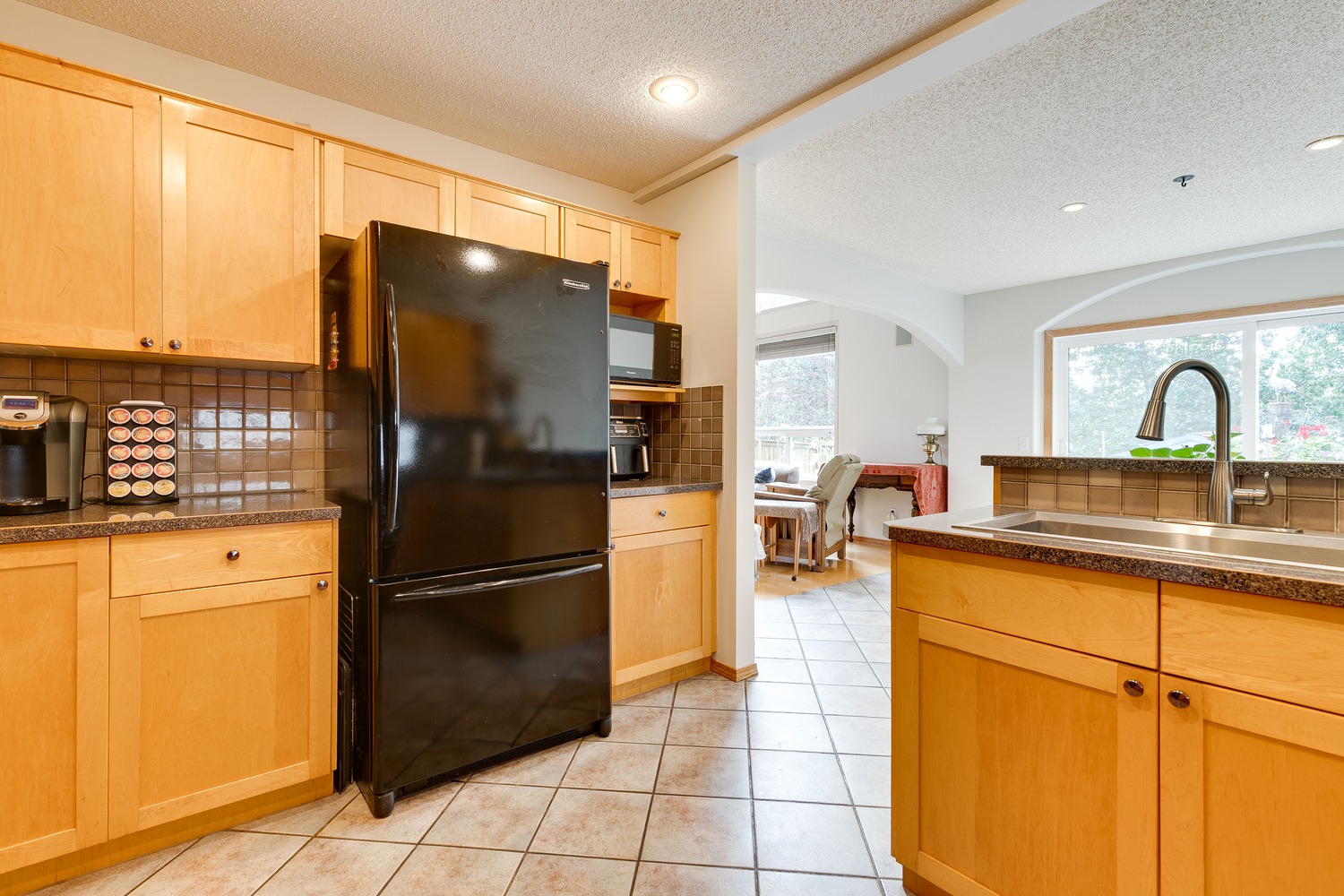 This sought-after neighbourhood offers direct access to the Valley Ridge Golf Course, Bow River pathways, and over 50% preserved green space—ideal for hiking, biking, and exploring the outdoors. Families will value the proximity to reputable schools, while the active community association fosters connection through events and programs. With quick access to Highway 1 and Stoney Trail, commuting downtown or across the city is effortless. This beautifully maintained home blends classic charm with modern comfort. The main level features a spacious foyer leading into a sun-filled living room with soaring 20-foot ceilings. An open floor plan flows into the dining area and generous kitchen, all overlooking the backyard. Upstairs, the primary suite includes a walk-in closet and 4-piece ensuite. Two additional bedrooms share a Jack & Jill bathroom, and laundry is conveniently located on the upper level. The finished basement offers a large family room, fourth bedroom, full bathroom, and ample storage. Outside, mature trees, a wood deck, and a garden shed create a private backyard retreat—perfect for relaxing or entertaining.
