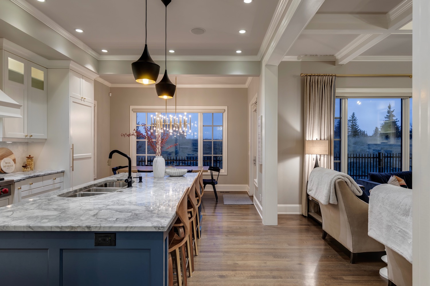 Welcome to 40 Mary Dover Drive SW, located in the highly desirable community of Currie Barracks. This custom built home by Mission Homes is situated on the most desirable street in all of Currie Barracks. Boasting over 4900 sqft of developed space, this home has everything a growing family needs. Impeccably maintained, this home feels and looks like a show home. The main floor offers soaring 10’ ceilings, beautiful hardwood floors, coffered ceiling details and wainscotting throughout. The main floor consist of an office space, dining room, living room with fireplace, kitchen with eating nook, mudroom, storage room, powder room and laundry. The kitchen offers marble counter-tops, Wolf & Miele appliances, a large island and hidden pantry. Upstairs you will find 3 bedrooms, 2 full en-suites, and a large family room. The two kids bedrooms have an extra large Jack&Jill bath setup with their own wash area with doors for privacy, it shares a large soaker tub and glass shower. The Primary Bedroom has been remodelled with a large reading area, and a fully renovated en-suite with heated floors, soaker tub, steam shower & large walk-in closet. The basement is fully finished with radiant in-floor heating, wet-bar, recreation/movie room, games room, gym, wine cellar, a 4th bedroom and a full bath with glass shower. The furnace room has been maintained yearly and also includes new dual hot water tanks, AC unit, soft water, & central vacuum. Backing on to a large green space, the exterior of the home has had extensive landscaping, including irrigation, a built-in fire pit, patio area and hot tub. This home has an extra large 3 car garage with heated floors and is fully finished including epoxy floors. FEATURES INCLUDE: 10’ CEILINGS ON MAIN, HARDWOOD FLOORS, MARBLE COUNTER-TOPS, MIELE & WOLF APPLIANCES, OFFICE SPACE, FIREPLACE, HEATED FLOORS, GYM, WET-BAR, WINE CELLAR, SONOS SOUND, IN-CELING SPEAKERS, EXTENSIVE LANDSCAPING, FIRE PIT, IRRIGATION, CENTRAL AIR, LARGE 3 CAR HEATED GARAGE