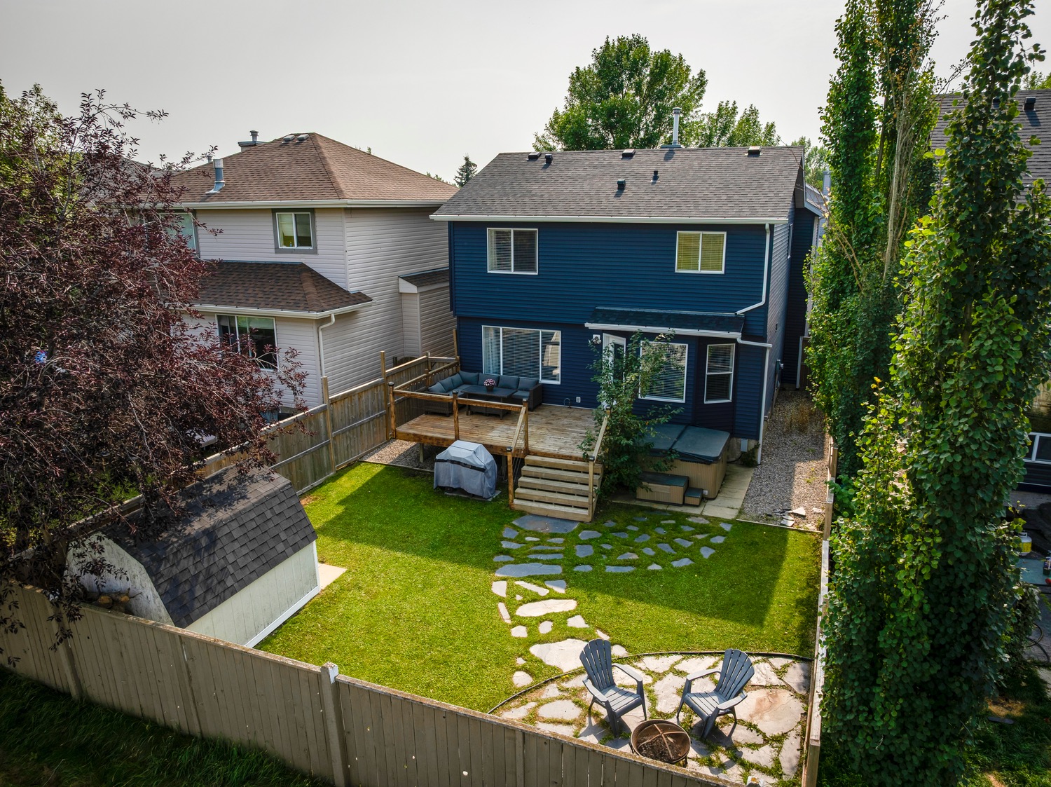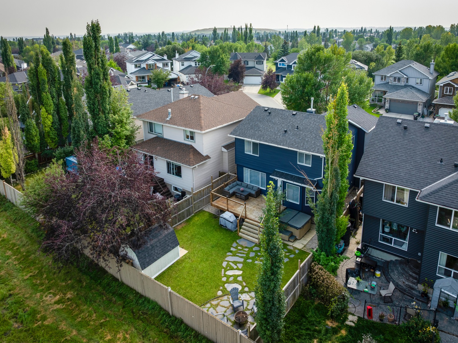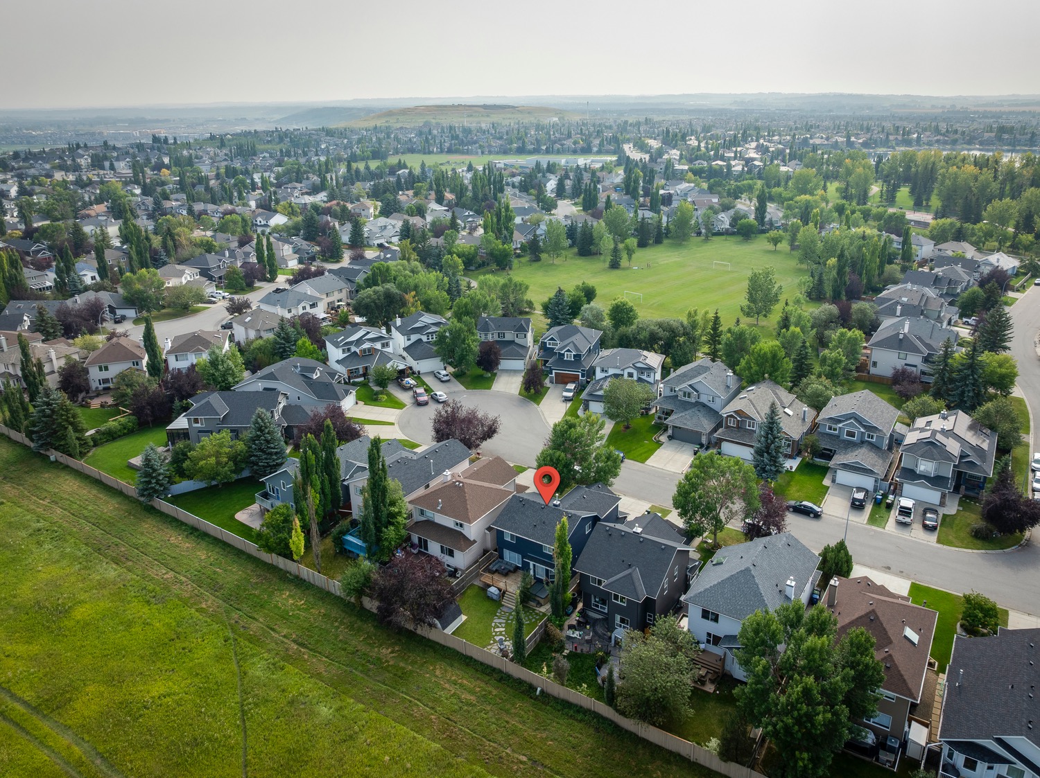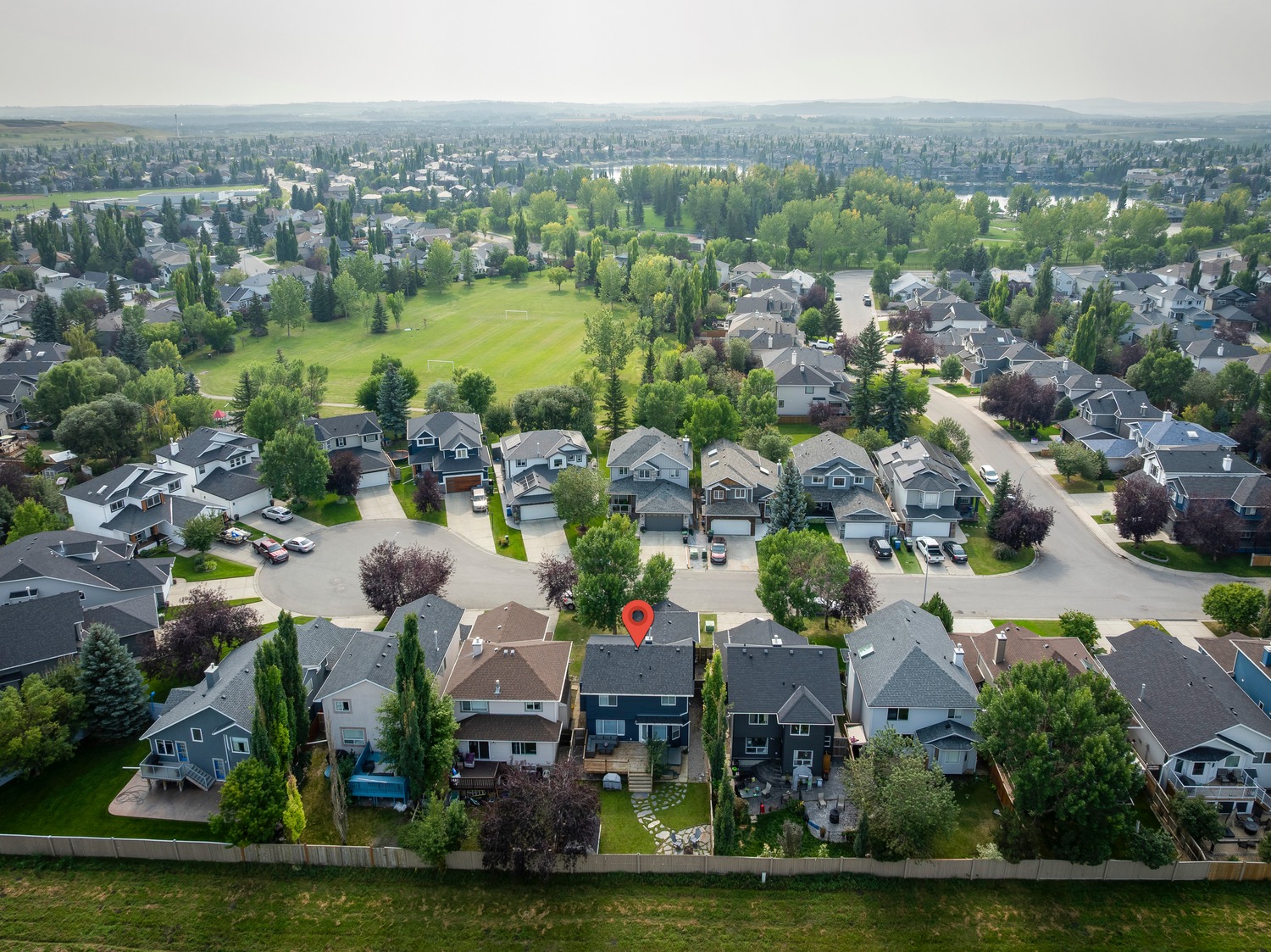 Welcome to this beautifully renovated and meticulously designed home in Lake Chaparral, offering over 2,300 sq. ft. of fully developed living space just one block from the lake. Step into the modern chef’s kitchen, featuring a massive 10-ft island that’s perfect for cooking and entertaining, granite countertops, a five-burner gas stove, stainless steel appliances, oversized cabinetry, built-in wine rack, and a spacious pantry. The open floor plan flows seamlessly into the dining and living areas, making it ideal for hosting family and friends. Upstairs, unwind in the bright and airy bonus room, complete with a cozy fireplace and plenty of space for movie nights (wired for surround sound). The primary retreat offers a stylish ensuite where you can relax in comfort, while two additional bedrooms and a large 4-pc bath complete this level. The fully developed basement extends your living space with a potential guest suite, full bathroom, and generous closet/flex area, ideal for a fourth bedroom, home gym, entertainment room or playroom. Enjoy entertaining outdoors in your private backyard oasis backing onto open green space with no neighbors behind, it feels like country living in the city. The mature landscaping, deck, and firepit area make this yard perfect for summer evenings. Appreciate the convenience of the exterior, roof and gutters all updated in 2023! Tucked away on a quiet cul-de-sac and just a short walk to Lake Chaparral, this home truly has it all. Do not miss this outstanding opportunity