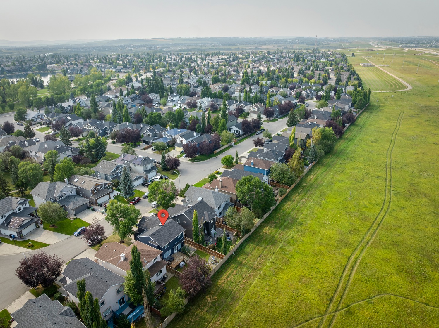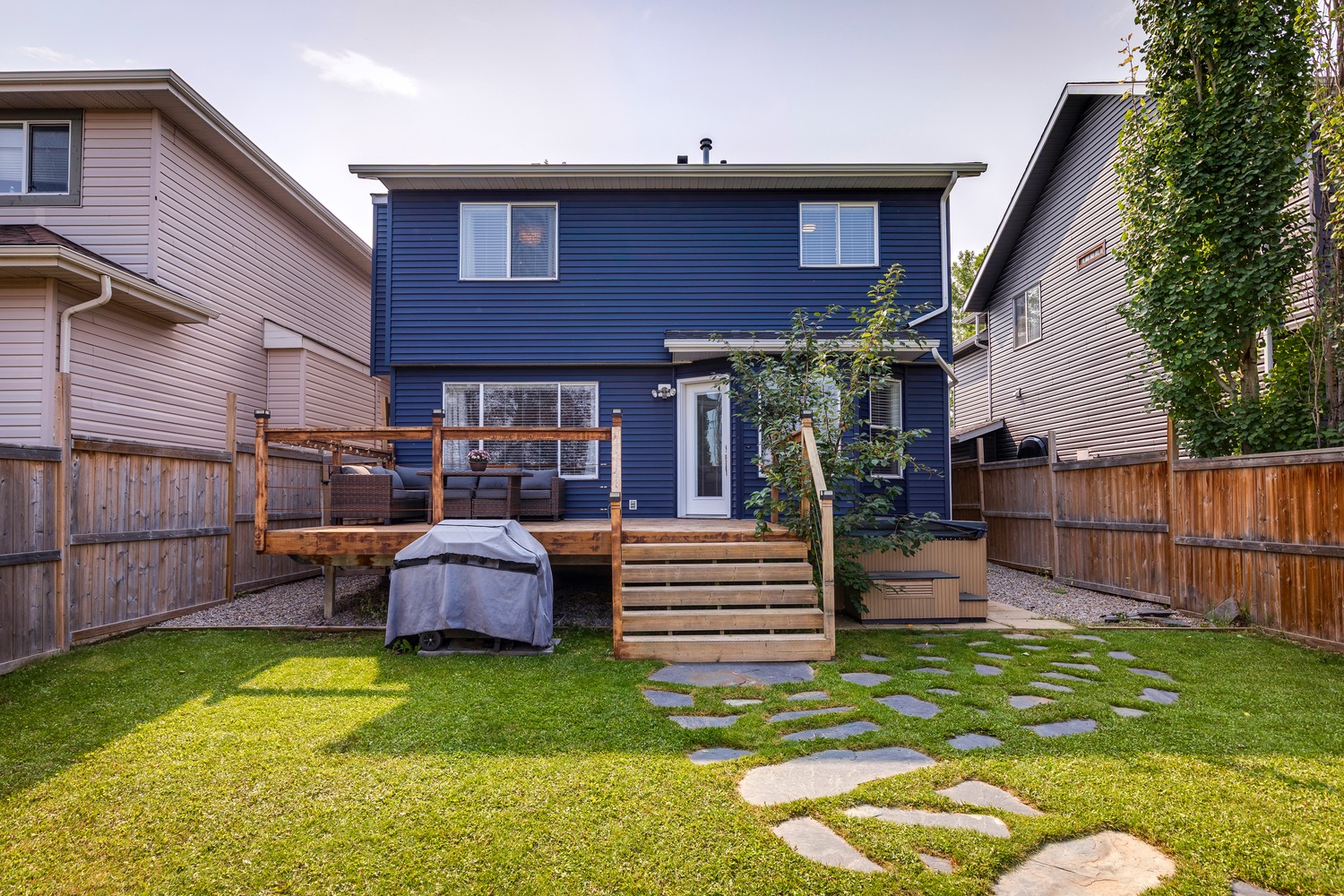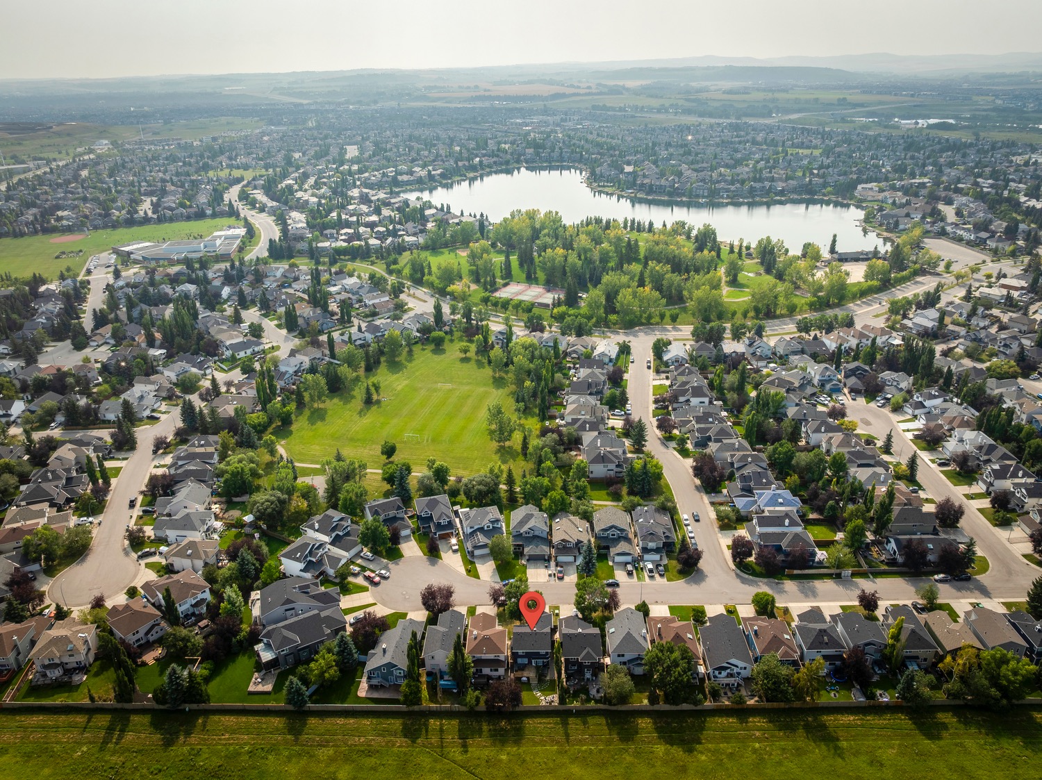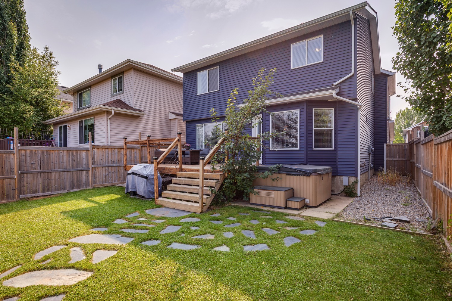 Welcome to this beautifully renovated and meticulously designed home in Lake Chaparral, offering over 2,300 sq. ft. of fully developed living space just one block from the lake. Step into the modern chef’s kitchen, featuring a massive 10-ft island that’s perfect for cooking and entertaining, granite countertops, a five-burner gas stove, stainless steel appliances, oversized cabinetry, built-in wine rack, and a spacious pantry. The open floor plan flows seamlessly into the dining and living areas, making it ideal for hosting family and friends. Upstairs, unwind in the bright and airy bonus room, complete with a cozy fireplace and plenty of space for movie nights (wired for surround sound). The primary retreat offers a stylish ensuite where you can relax in comfort, while two additional bedrooms and a large 4-pc bath complete this level. The fully developed basement extends your living space with a potential guest suite, full bathroom, and generous closet/flex area, ideal for a fourth bedroom, home gym, entertainment room or playroom. Enjoy entertaining outdoors in your private backyard oasis backing onto open green space with no neighbors behind, it feels like country living in the city. The mature landscaping, deck, and firepit area make this yard perfect for summer evenings. Appreciate the convenience of the exterior, roof and gutters all updated in 2023! Tucked away on a quiet cul-de-sac and just a short walk to Lake Chaparral, this home truly has it all. Do not miss this outstanding opportunity