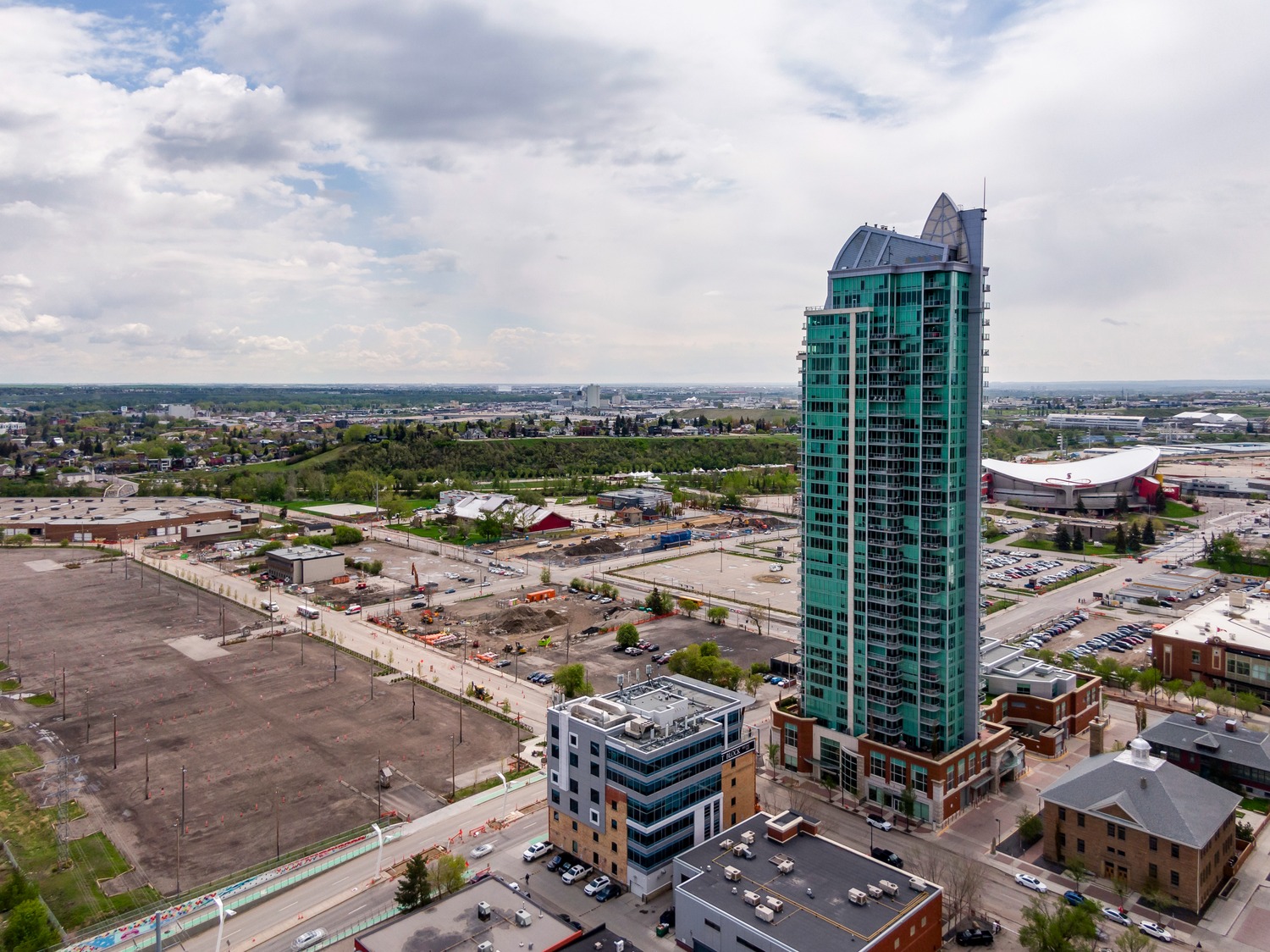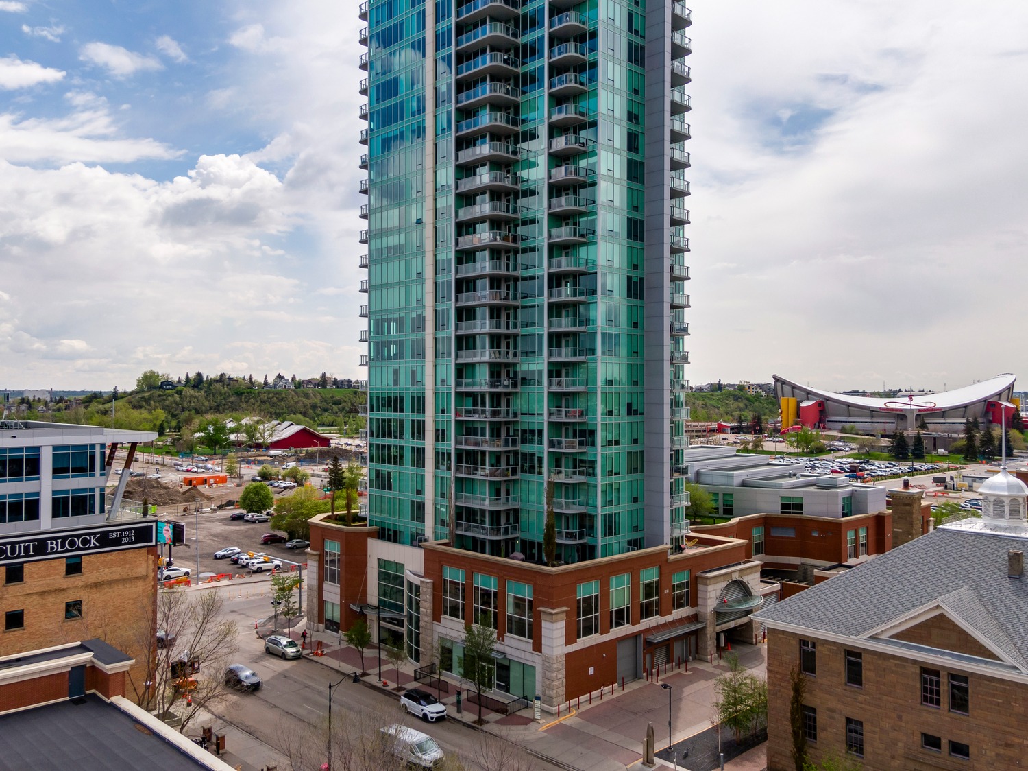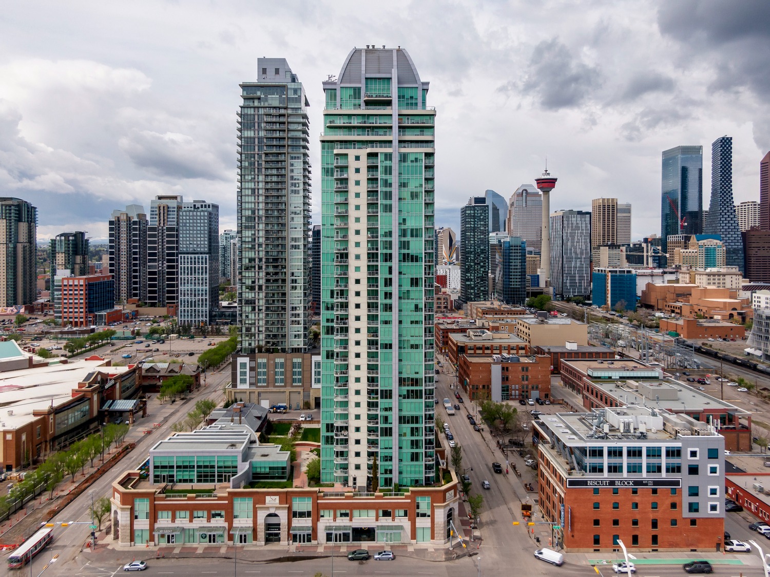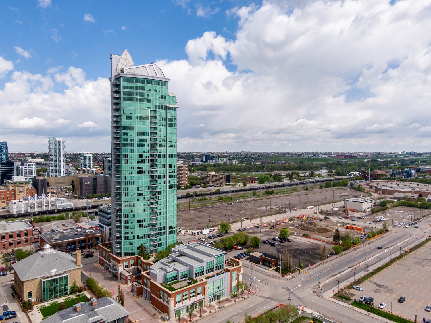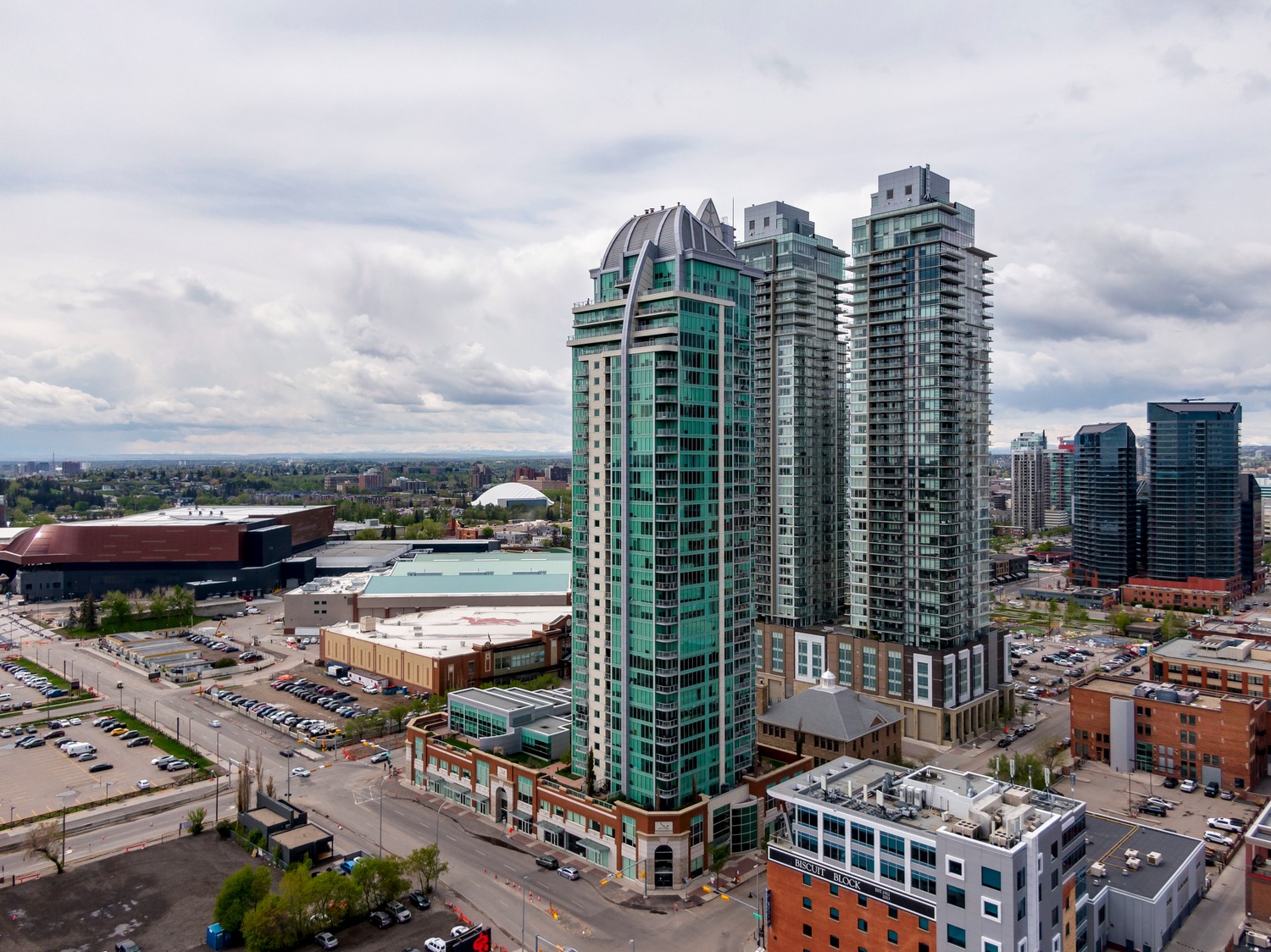 Experience unparalleled views from this side of Arriva. Enjoy stunning horizon, Bow River, and Stampede Park vistas from your trendy one-bedroom unit. This spacious unit boasts 9' ceilings and an open floor plan encompassing the kitchen, dining, and living areas. The kitchen is equipped with high-end MIELE appliances, including a gourmet gas stove, quartz countertops, and a convenient breakfast bar, perfect for those who love to cook. A convenient office nook is located off the main entrance, along with a half bath for guests. The unit features luxury vinyl flooring throughout; there is no carpet in this unit. The spacious bedroom offers spectacular views and includes a vanity. Enjoy the luxurious spa ensuite 4-piece bath with a separate shower and soaking tub, complete with a large walk-in closet. Additionally, the unit includes an in-suite laundry room and ample storage space. Relax on the large balcony, perfect for taking in the scenery. The condo also features a sizable flex room you can convert into an office if working from home. With two bathrooms, this unit is great for hosting guests or for two people living together. Included is one titled underground parking space and an additional assigned storage unit. The building offers numerous amenities on the 4th floor, including a party room with a kitchen and tasteful decor opening to the garden area, with spectacular river and city views, BBQ facilities, and a pleasant ambiance. There are 2 guest suites available for your visitors. A bonus is the 24-hour concierge on duty to assist you, ensuring all your packages are received and your unit is secure. The building is well-maintained, with respectful owners. Located just steps away from Stampede Park, you can enjoy the Calgary Stampede festivities and fireworks from the comfort of your balcony! Walk or bike to downtown, restaurants, and shopping. The location is great; you can walk to work, it’s easy to drive out of downtown, close to Inglewood and East Village, and perfect for going to hockey games. The unit is large for a one-bedroom; several of the newer condos are much smaller. A spectacular lifestyle awaits!