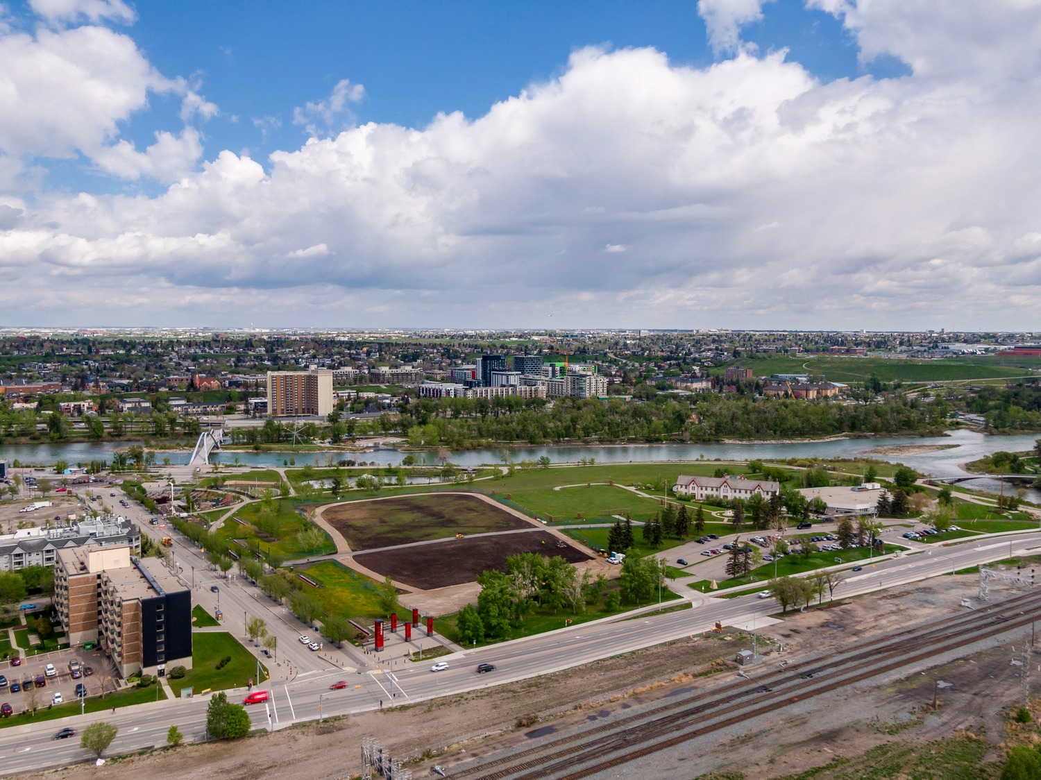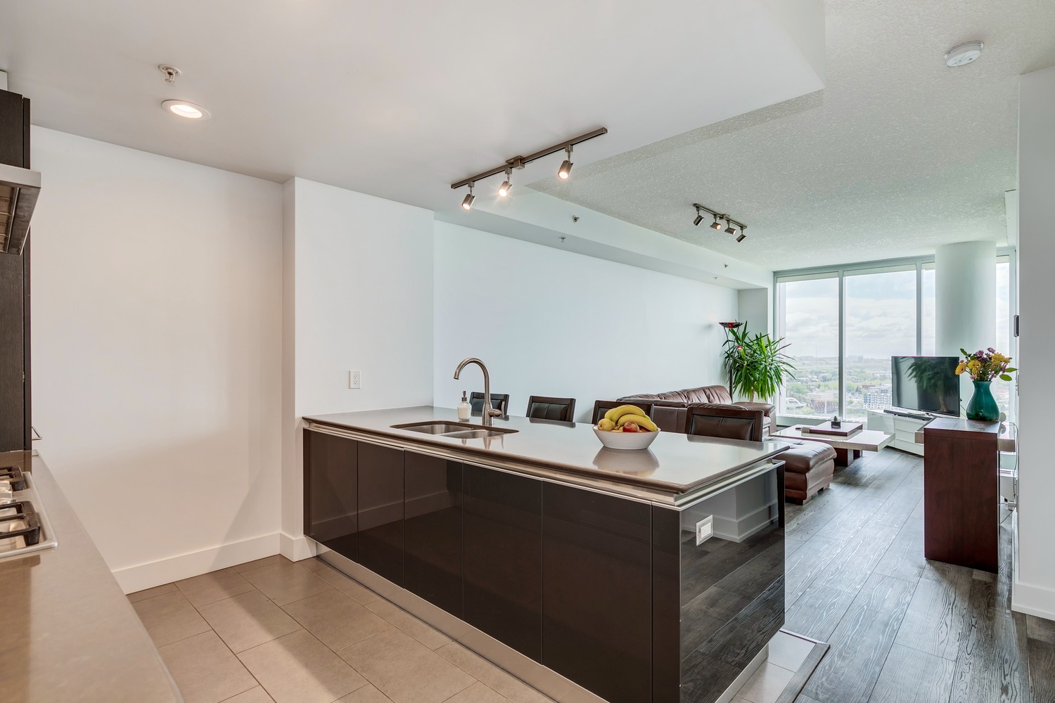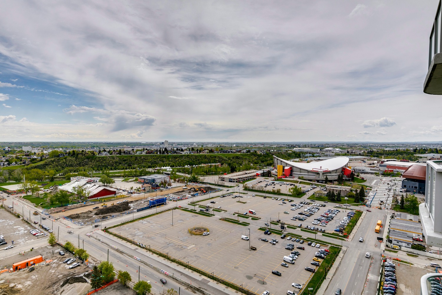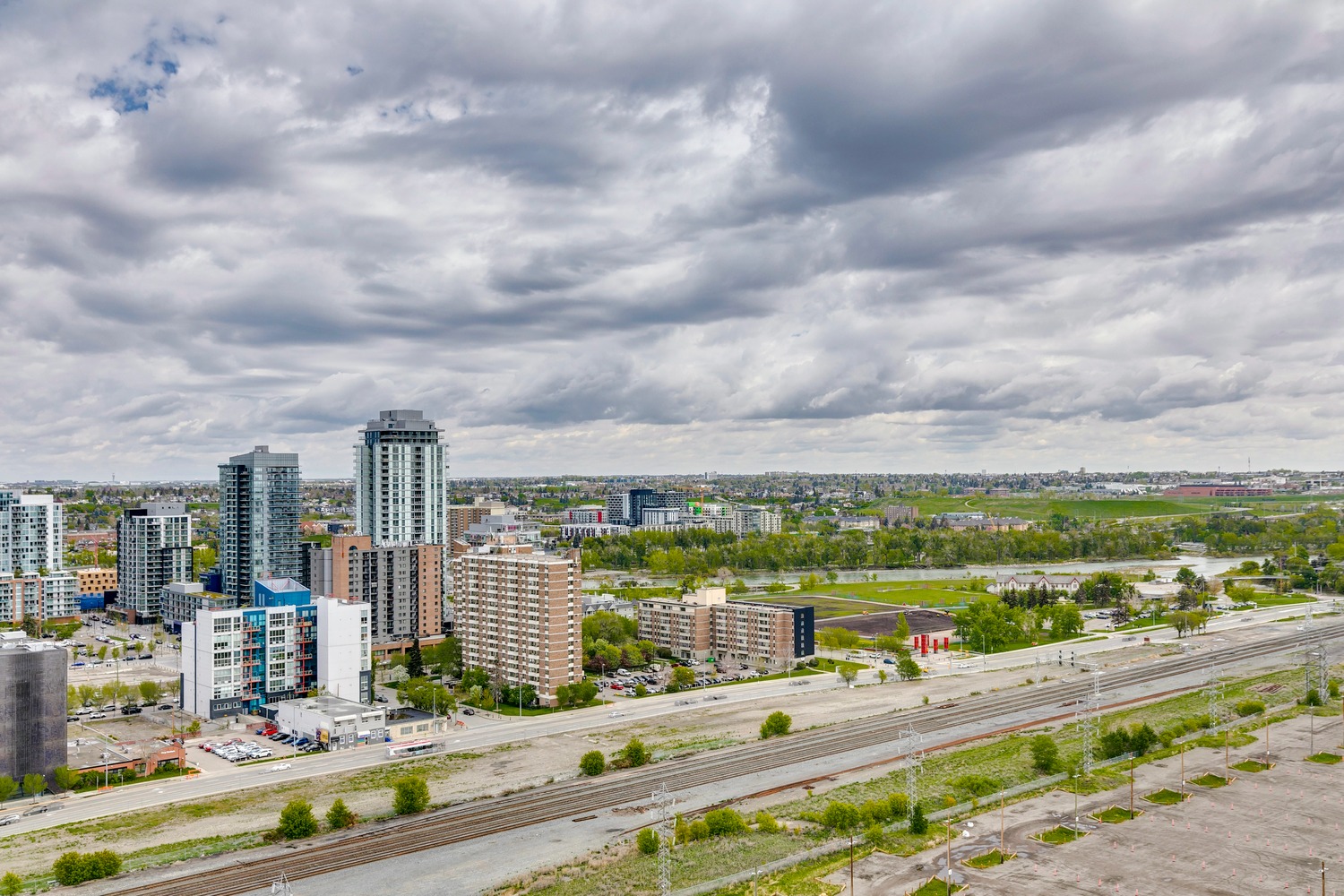 Experience unparalleled views from this side of Arriva. Enjoy stunning horizon, Bow River, and Stampede Park vistas from your trendy one-bedroom unit. This spacious unit boasts 9' ceilings and an open floor plan encompassing the kitchen, dining, and living areas. The kitchen is equipped with high-end MIELE appliances, including a gourmet gas stove, quartz countertops, and a convenient breakfast bar, perfect for those who love to cook. A convenient office nook is located off the main entrance, along with a half bath for guests. The unit features luxury vinyl flooring throughout; there is no carpet in this unit. The spacious bedroom offers spectacular views and includes a vanity. Enjoy the luxurious spa ensuite 4-piece bath with a separate shower and soaking tub, complete with a large walk-in closet. Additionally, the unit includes an in-suite laundry room and ample storage space. Relax on the large balcony, perfect for taking in the scenery. The condo also features a sizable flex room you can convert into an office if working from home. With two bathrooms, this unit is great for hosting guests or for two people living together. Included is one titled underground parking space and an additional assigned storage unit. The building offers numerous amenities on the 4th floor, including a party room with a kitchen and tasteful decor opening to the garden area, with spectacular river and city views, BBQ facilities, and a pleasant ambiance. There are 2 guest suites available for your visitors. A bonus is the 24-hour concierge on duty to assist you, ensuring all your packages are received and your unit is secure. The building is well-maintained, with respectful owners. Located just steps away from Stampede Park, you can enjoy the Calgary Stampede festivities and fireworks from the comfort of your balcony! Walk or bike to downtown, restaurants, and shopping. The location is great; you can walk to work, it’s easy to drive out of downtown, close to Inglewood and East Village, and perfect for going to hockey games. The unit is large for a one-bedroom; several of the newer condos are much smaller. A spectacular lifestyle awaits!