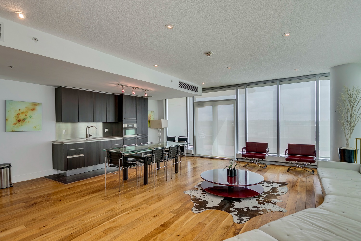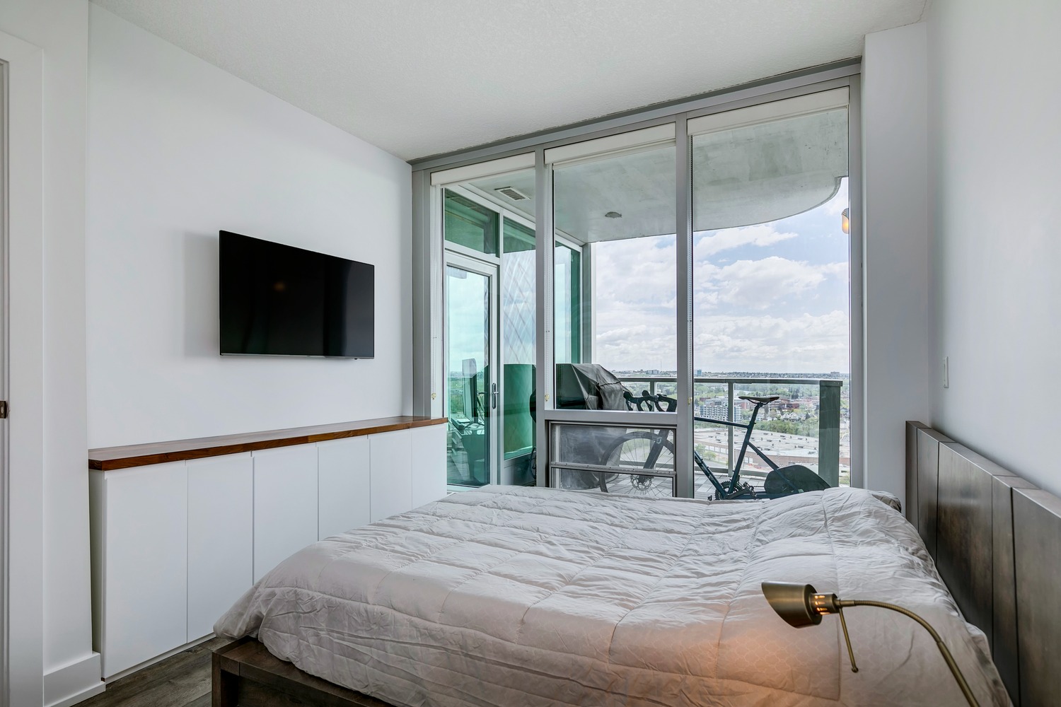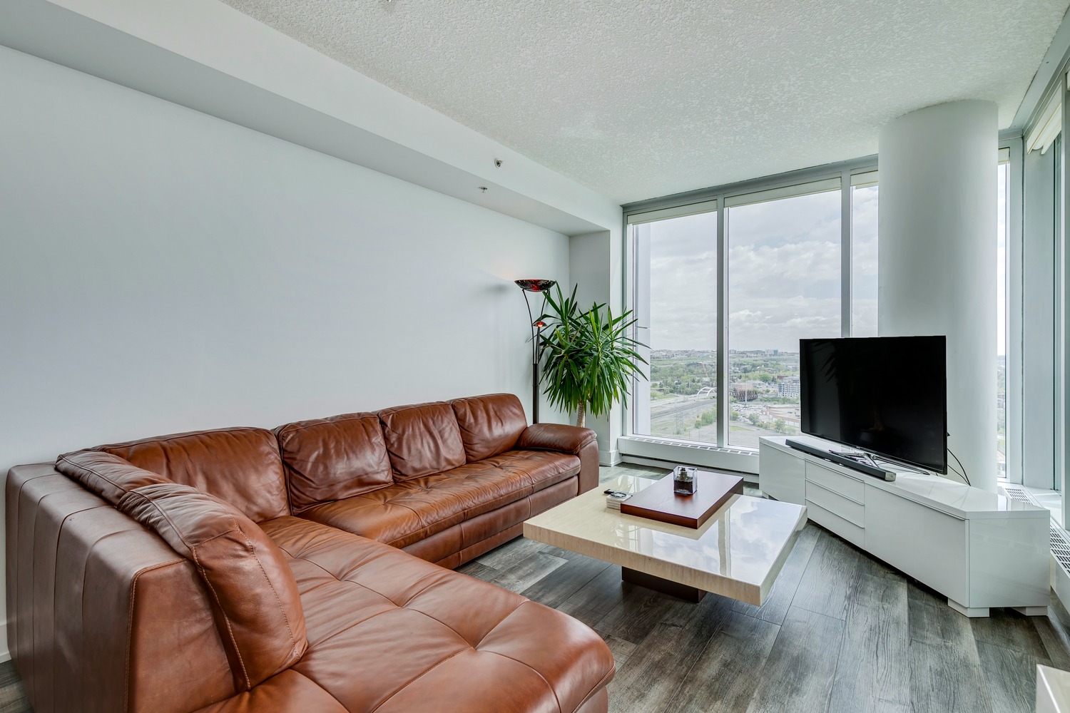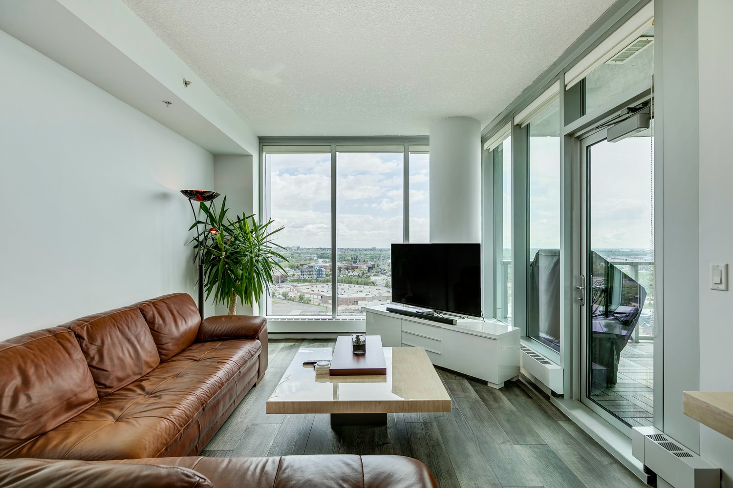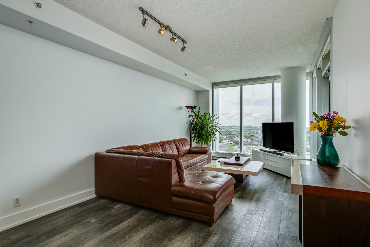 Experience unparalleled views from this side of Arriva. Enjoy stunning horizon, Bow River, and Stampede Park vistas from your trendy one-bedroom unit. This spacious unit boasts 9' ceilings and an open floor plan encompassing the kitchen, dining, and living areas. The kitchen is equipped with high-end MIELE appliances, including a gourmet gas stove, quartz countertops, and a convenient breakfast bar, perfect for those who love to cook. A convenient office nook is located off the main entrance, along with a half bath for guests. The unit features luxury vinyl flooring throughout; there is no carpet in this unit. The spacious bedroom offers spectacular views and includes a vanity. Enjoy the luxurious spa ensuite 4-piece bath with a separate shower and soaking tub, complete with a large walk-in closet. Additionally, the unit includes an in-suite laundry room and ample storage space. Relax on the large balcony, perfect for taking in the scenery. The condo also features a sizable flex room you can convert into an office if working from home. With two bathrooms, this unit is great for hosting guests or for two people living together. Included is one titled underground parking space and an additional assigned storage unit. The building offers numerous amenities on the 4th floor, including a party room with a kitchen and tasteful decor opening to the garden area, with spectacular river and city views, BBQ facilities, and a pleasant ambiance. There are 2 guest suites available for your visitors. A bonus is the 24-hour concierge on duty to assist you, ensuring all your packages are received and your unit is secure. The building is well-maintained, with respectful owners. Located just steps away from Stampede Park, you can enjoy the Calgary Stampede festivities and fireworks from the comfort of your balcony! Walk or bike to downtown, restaurants, and shopping. The location is great; you can walk to work, it’s easy to drive out of downtown, close to Inglewood and East Village, and perfect for going to hockey games. The unit is large for a one-bedroom; several of the newer condos are much smaller. A spectacular lifestyle awaits!