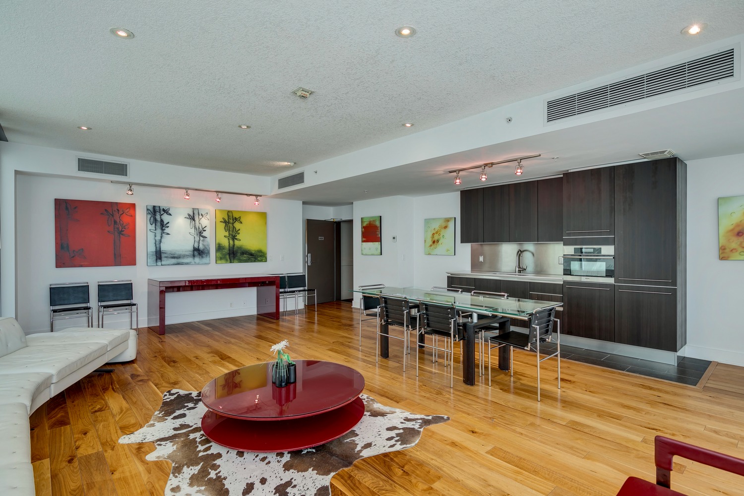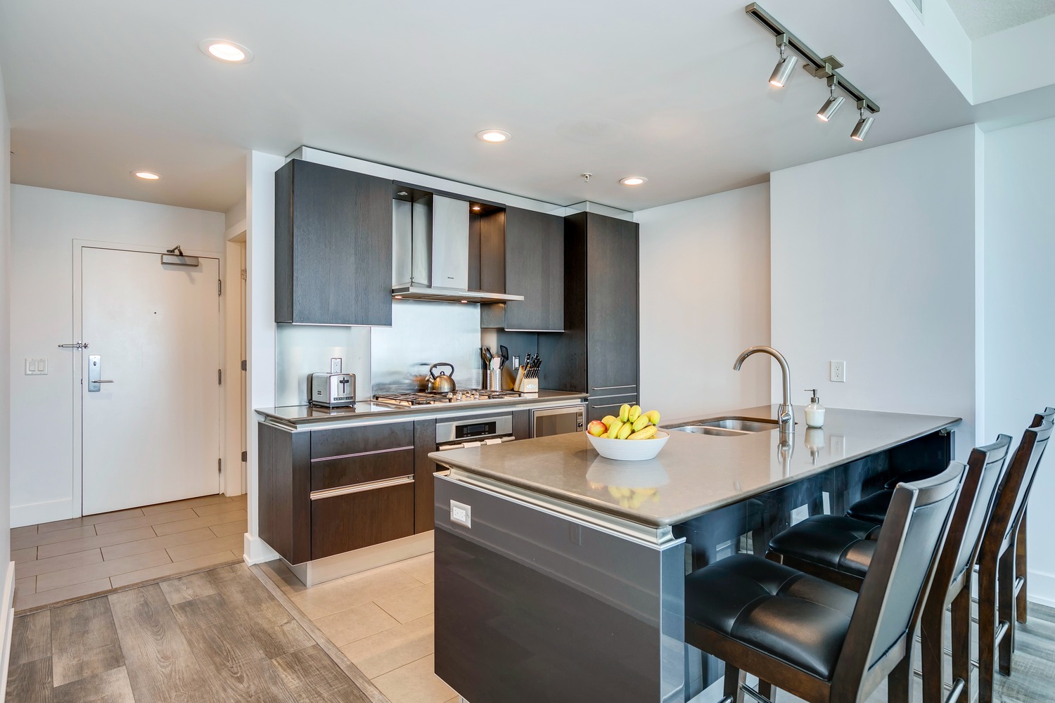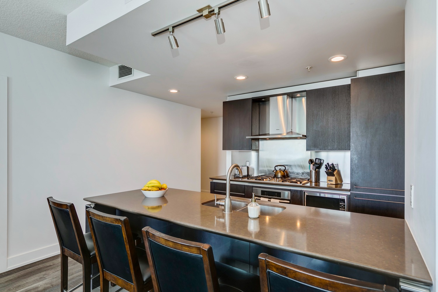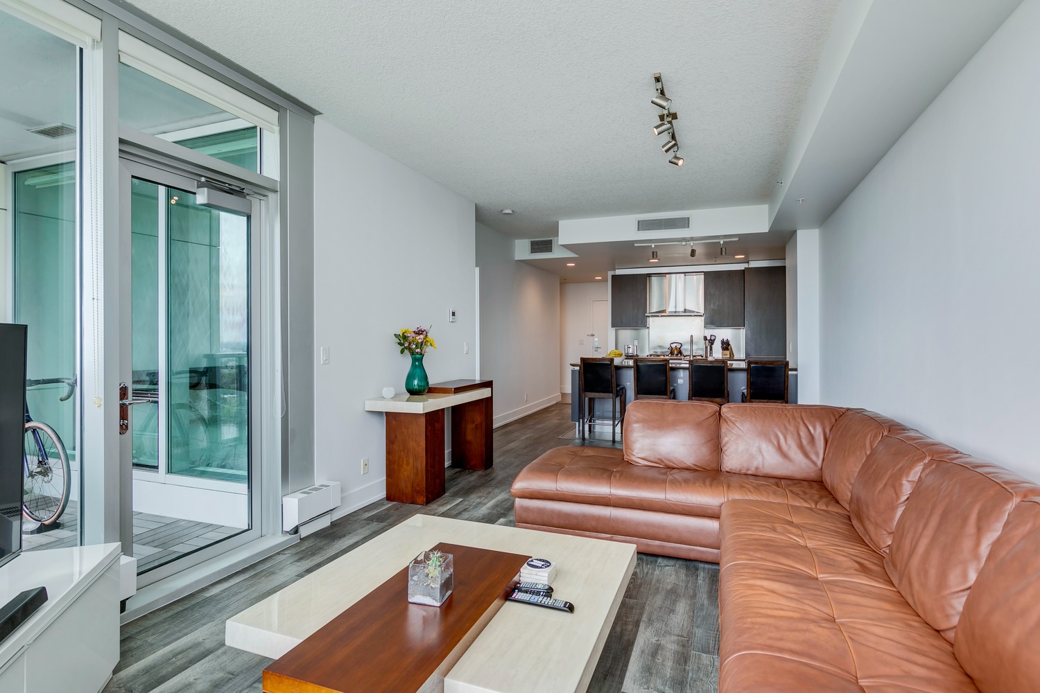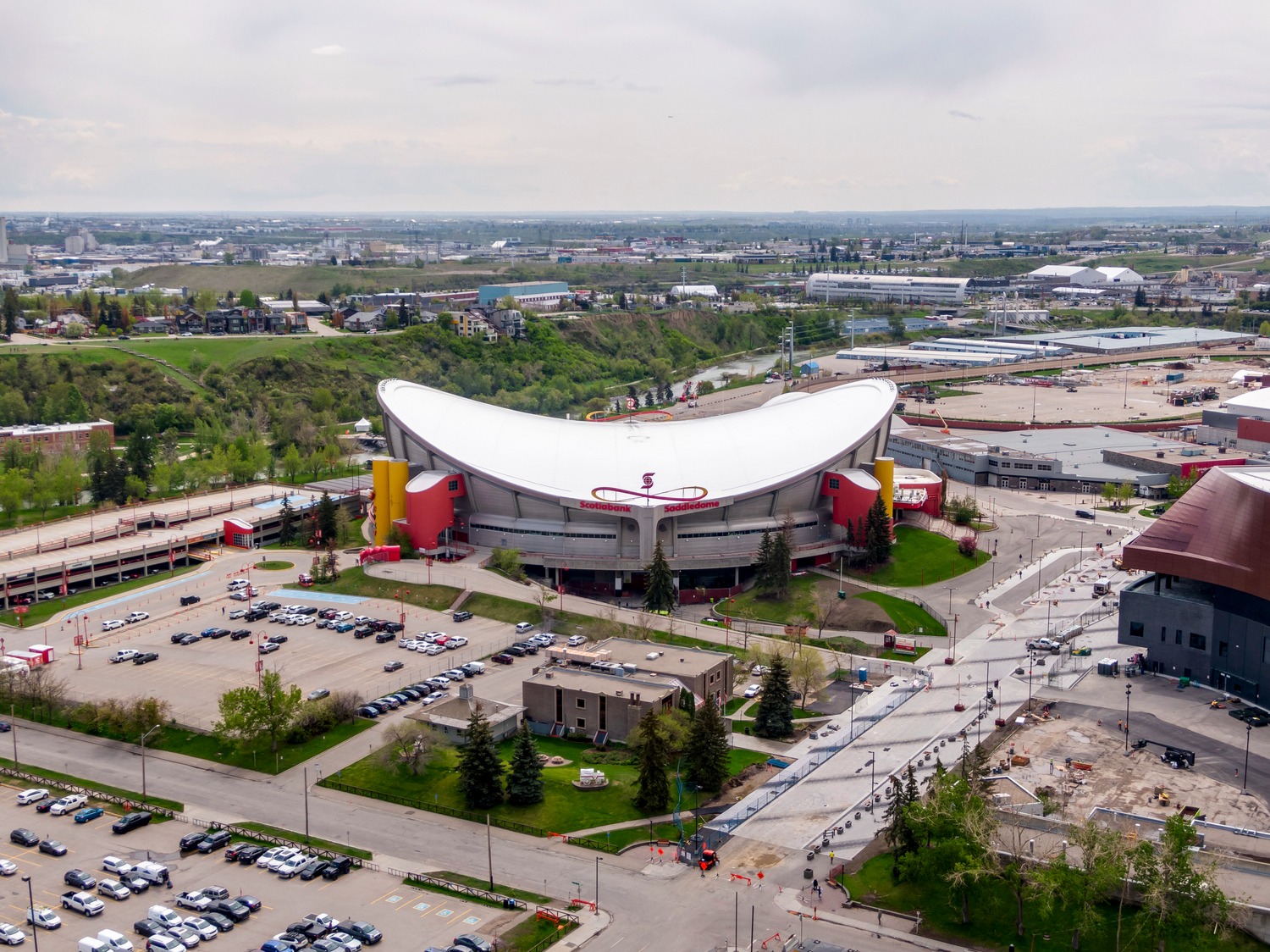 Experience unparalleled views from this side of Arriva. Enjoy stunning horizon, Bow River, and Stampede Park vistas from your trendy one-bedroom unit. This spacious unit boasts 9' ceilings and an open floor plan encompassing the kitchen, dining, and living areas. The kitchen is equipped with high-end MIELE appliances, including a gourmet gas stove, quartz countertops, and a convenient breakfast bar, perfect for those who love to cook. A convenient office nook is located off the main entrance, along with a half bath for guests. The unit features luxury vinyl flooring throughout; there is no carpet in this unit. The spacious bedroom offers spectacular views and includes a vanity. Enjoy the luxurious spa ensuite 4-piece bath with a separate shower and soaking tub, complete with a large walk-in closet. Additionally, the unit includes an in-suite laundry room and ample storage space. Relax on the large balcony, perfect for taking in the scenery. The condo also features a sizable flex room you can convert into an office if working from home. With two bathrooms, this unit is great for hosting guests or for two people living together. Included is one titled underground parking space and an additional assigned storage unit. The building offers numerous amenities on the 4th floor, including a party room with a kitchen and tasteful decor opening to the garden area, with spectacular river and city views, BBQ facilities, and a pleasant ambiance. There are 2 guest suites available for your visitors. A bonus is the 24-hour concierge on duty to assist you, ensuring all your packages are received and your unit is secure. The building is well-maintained, with respectful owners. Located just steps away from Stampede Park, you can enjoy the Calgary Stampede festivities and fireworks from the comfort of your balcony! Walk or bike to downtown, restaurants, and shopping. The location is great; you can walk to work, it’s easy to drive out of downtown, close to Inglewood and East Village, and perfect for going to hockey games. The unit is large for a one-bedroom; several of the newer condos are much smaller. A spectacular lifestyle awaits!