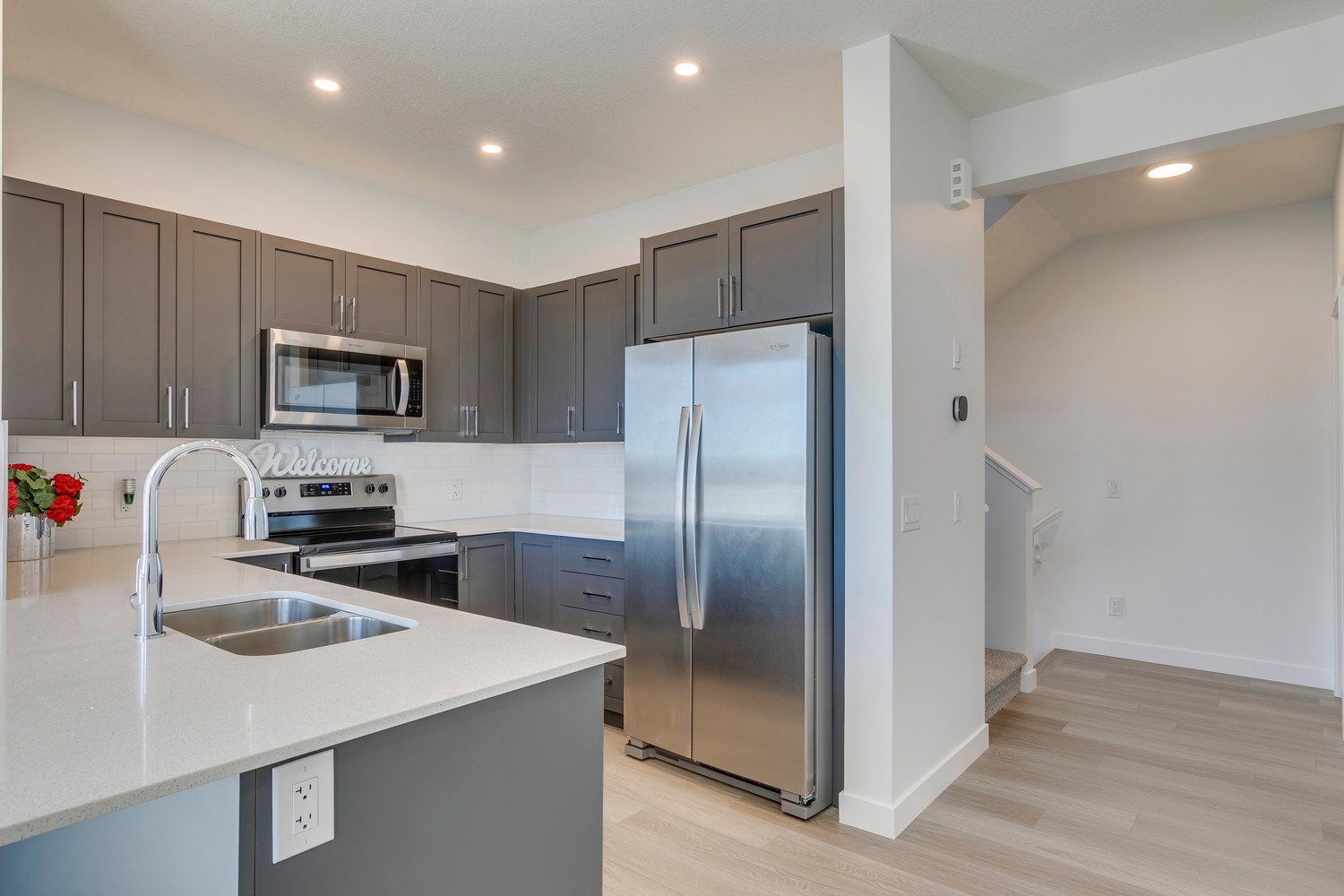 Discover the ultimate in luxury living in this stunning, 3-bedroom corner unit townhome with a garage, nestled in the esteemed Belvedere Rise community, where luxury and convenience come together in perfect harmony. This exclusive project showcases exquisitely designed townhomes featuring a single attached garage with a driveway for a second vehicle, ideal for families seeking the ultimate in convenience and freedom. The seller has upgraded the HVAC to a 2-ton unit ($6,000 value) and added a BBQ gas line with a quick disconnect and shutoff valve, making outdoor entertaining effortless. Situated just a short stroll from East Hills Shopping Centre, residents can indulge in the fresh air while accessing everyday essentials like Costco, Walmart, banks, and more, all within walking distance. Imagine being just steps to Bus Rapid Transit (BRT), Stoney Trail (Calgary’s ring road/perimeter highway), and a short drive to Chestermere Lake for outdoor activities, Downtown Calgary, the Calgary International Airport, the South Health Campus, Kananaskis, and Banff. This wont last long, better run. Some photos are virtually staged**