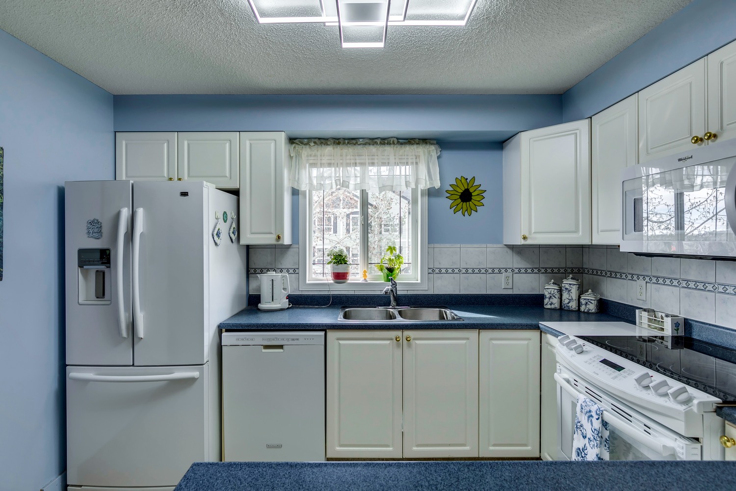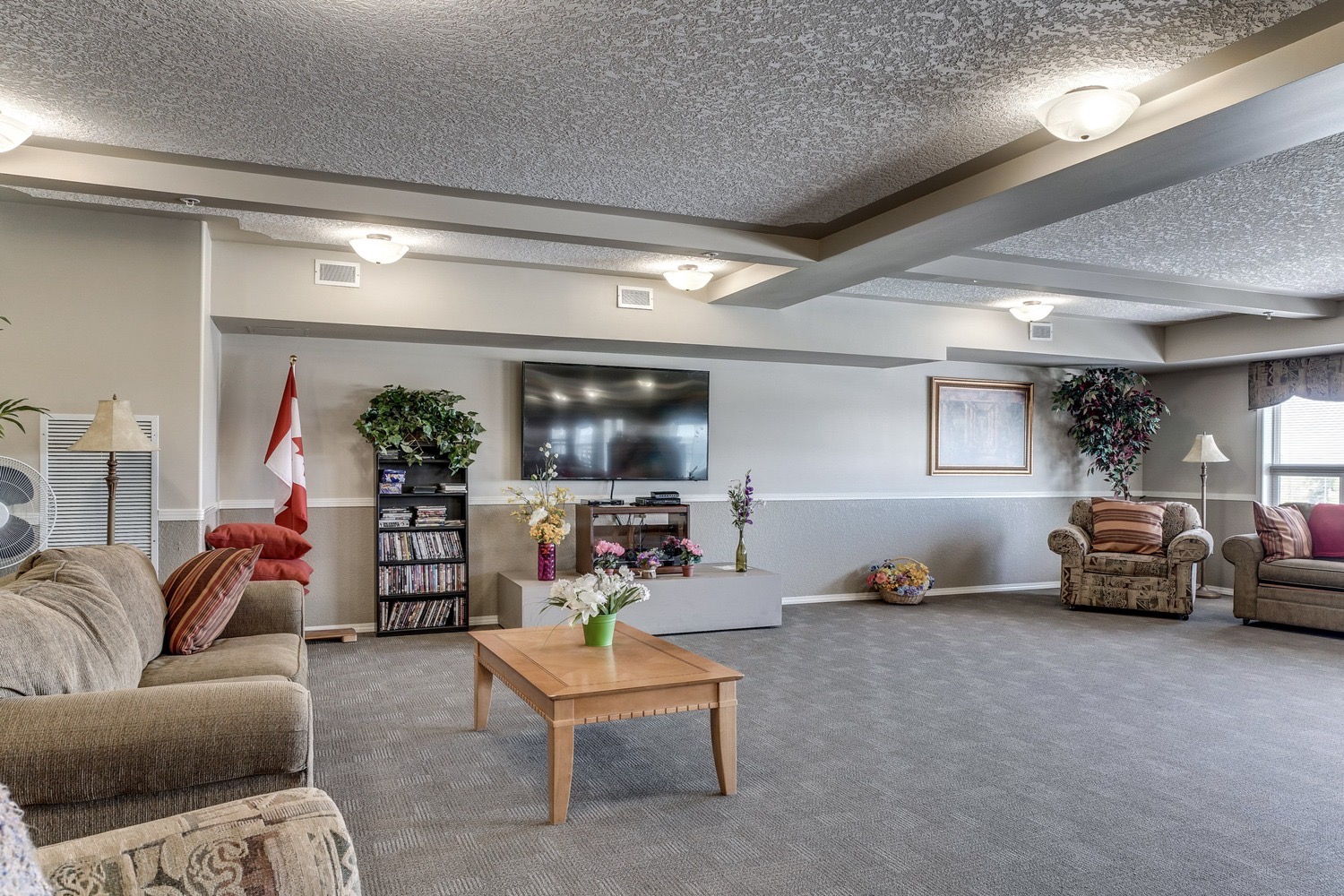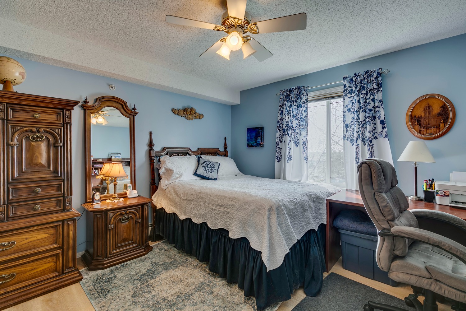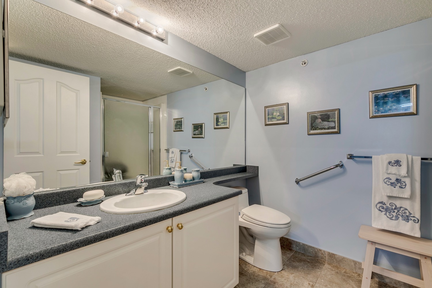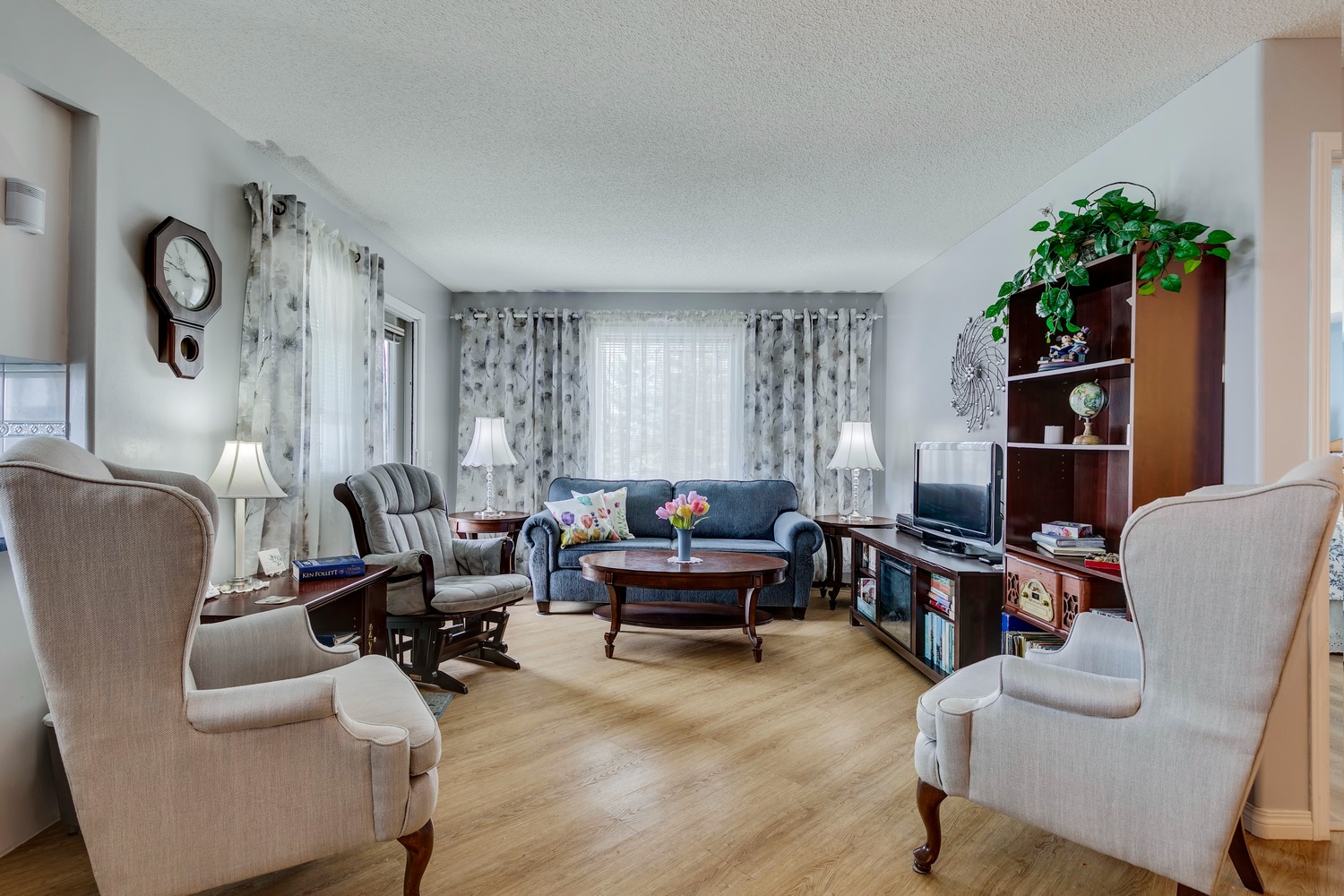 A quiet corner unit in the fabulous complex of Legacy Estates in Millrise with window A/C and no unit above. This 60+ building offers an exceptional life-style. A rare 1000+ sq ft 2 bedroom 2 bath unit is bright and roomy with multiple windows allowing an abundance of natural light. The in-suite laundry has stacked front loading washer/dryer (washer is brand new) and excellent storage. There is an additional titled storage unit and a titled parking stall in a heated, secure parkade, with a shared car wash bay.The bright, spacious kitchen is equipped with high end appliances including: GE cook top stove with convection oven, Whirpool microwave, Kitchen Aid dishwasher and Maytag fridge with ice maker and filtered water dispenser. You’ll appreciate plenty of counter and cupboard space. The tree lined shaded balcony is accessed through the gracious livingroom and faces a quiet parking lot and driveway. New luxury vinyl with premium underlay in both bedrooms has been recently installed. Flooring is all vinyl plank and tile, with no carpet. Lighting has been updated in kitchen and dining room, as has the main bath sink faucet and hand held shower head in ensuite. Building amenities abound including: library, fitness room, dining room, social room, rooftop patio, card clubs, coffee club, knitting and craft clubs, pool table and shuffle board in games room, regular social events and entertainment, a guest suite that can be rented when company comes, wheelchair accessibility, on site hairdresser. Pet approval required. Condo fees include everything except cable and phone. There is a mandatory meal plan of $75 a month for delicious and varied chef cooked meals available 5 nights a week.The chef will also cater the dining hall for special events and family celebrations. No need to go on a cruise you live in luxury in this building!